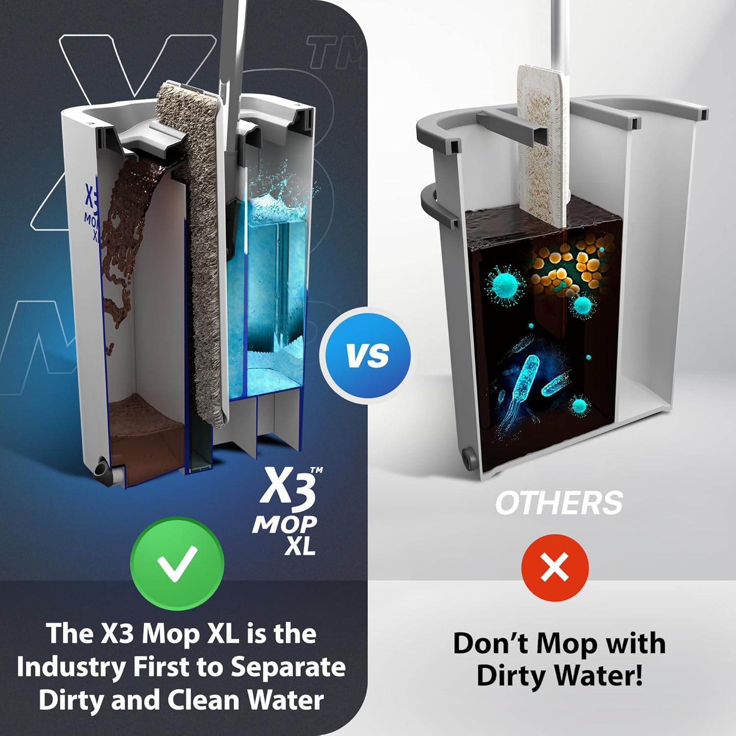 - ๐ 35% LARGER DESIGN: Cover more ground and get your cleaning done faster with our expansive mop head! The X3 Mop XL ensures you spend less time mopping and more time enjoying a clean home.