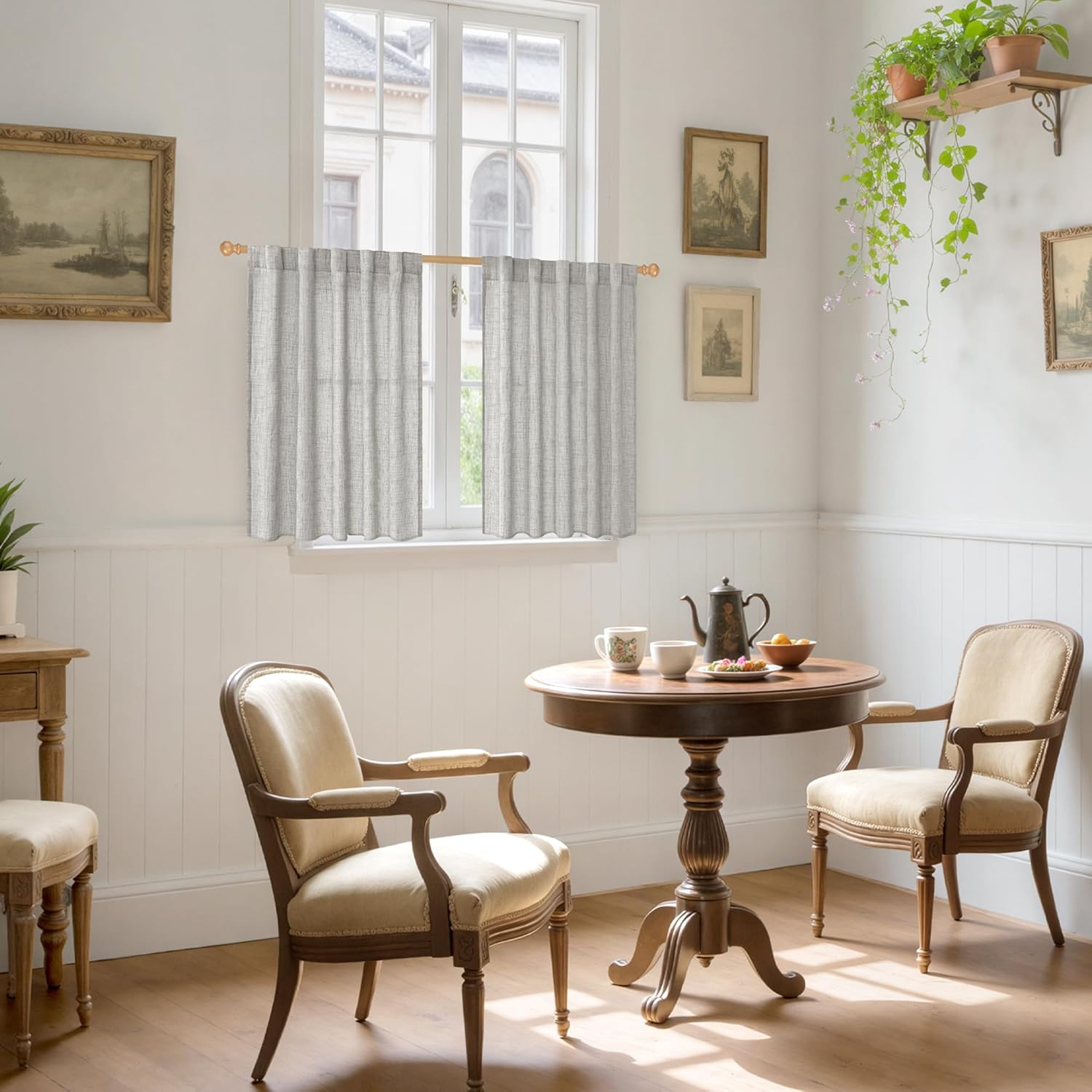 YoungsTex Dark Grey Linen Semi Sheer Curtains 36 Inch Length for Cafe Winow, Short Drapes Light Filtering with Rod Pocket Back Tab for Bathroom, 2 Panels, 42 X 36 Inch