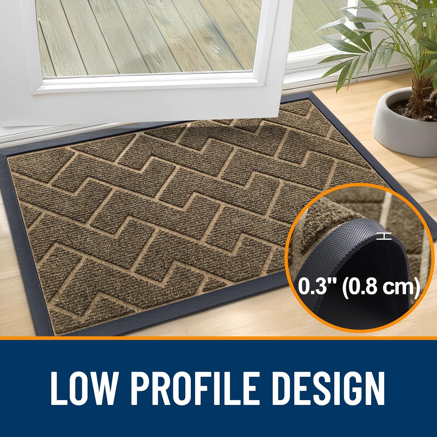 OLANLY Front Door Mat Indoor Outdoor Entrance, Waterproof All-Season, All-Weather Doormat, Sturdy Natural Rubber, Low Profile, Easy Clean Patio Porch Entryway Mat, Herringbone Brick (Brown, 71x47)