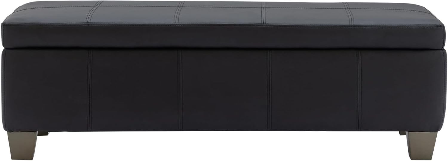 51 Inch Black Faux Leather Ottoman with Storage, Rectangular Extra Long Bench, End of Bed Bench with Large Storage for Bedroom, Living Room