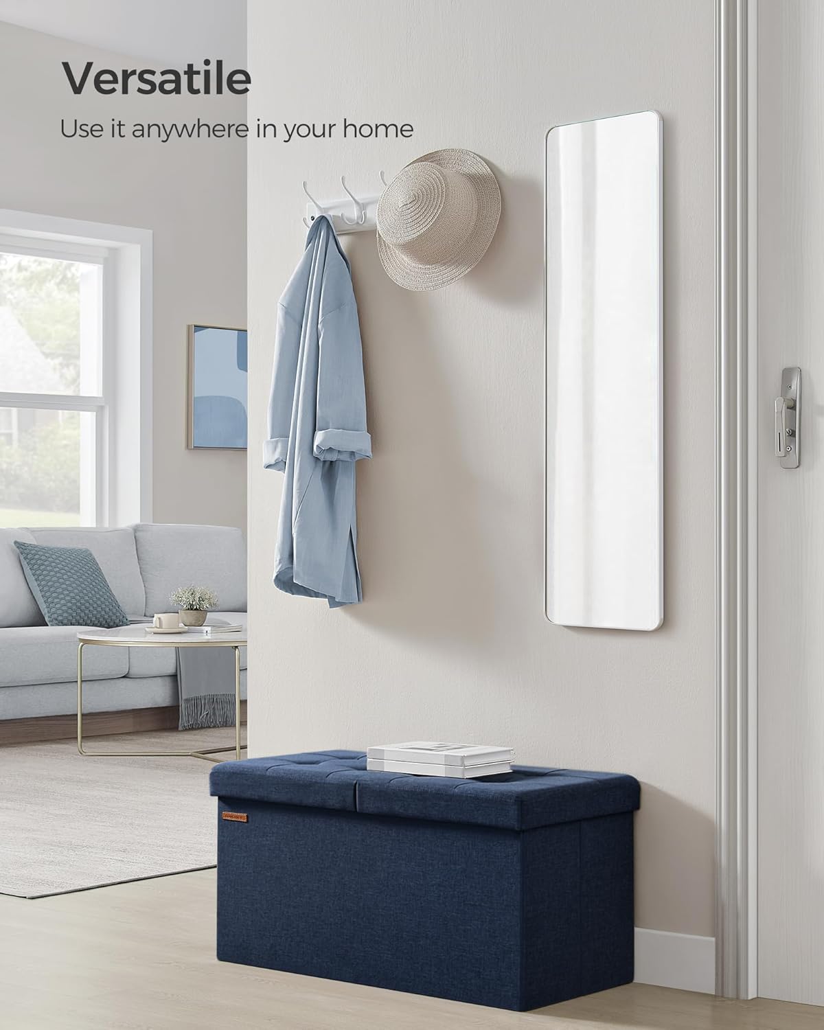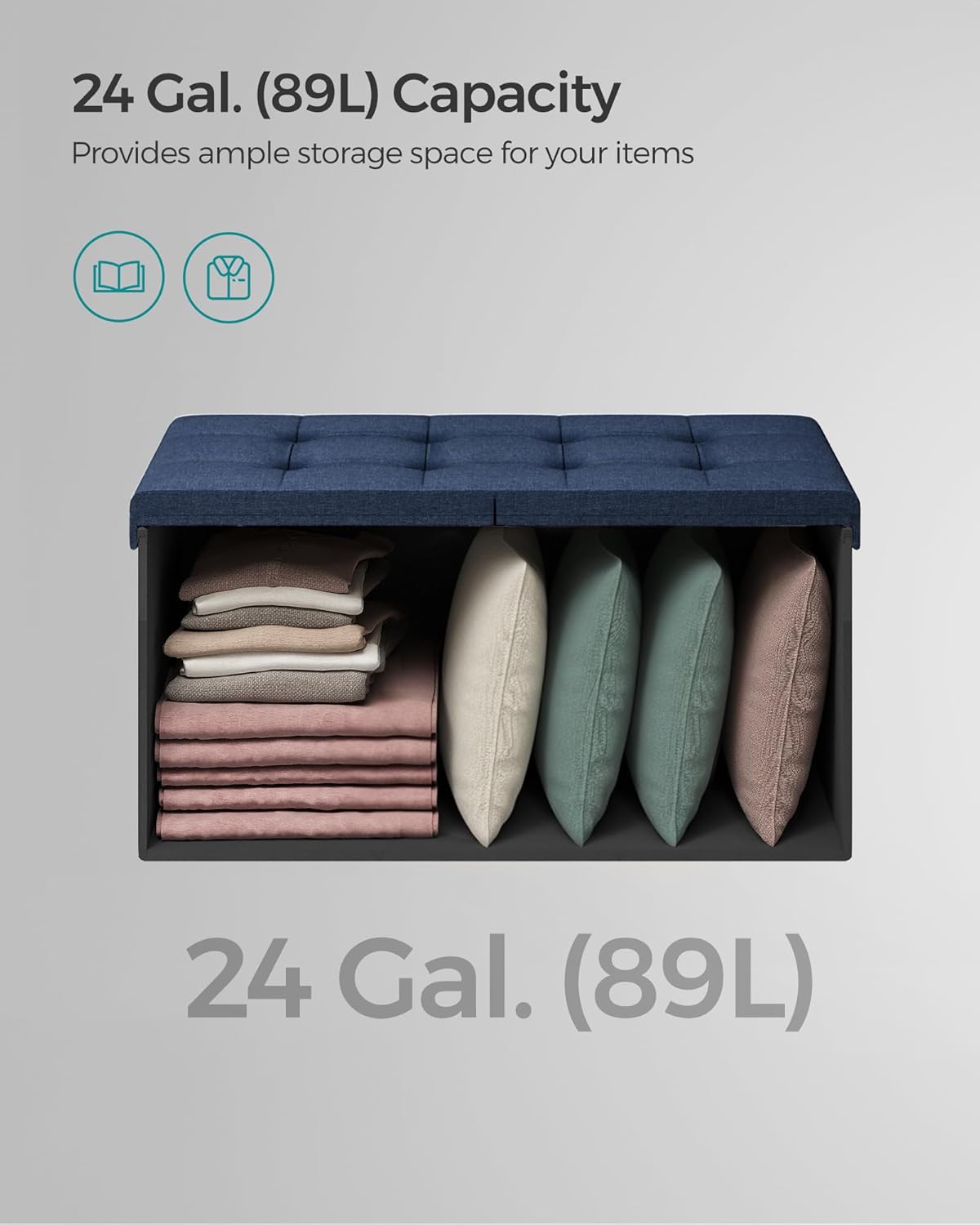 SONGMICS Mazie Collection - 30 Inches Storage Ottoman, Foldable Storage Bench with Flipping Lid, 660 lb Load Capacity, for Entryway, Living Room, Bedroom, Midnight Blue ULSF046Q02