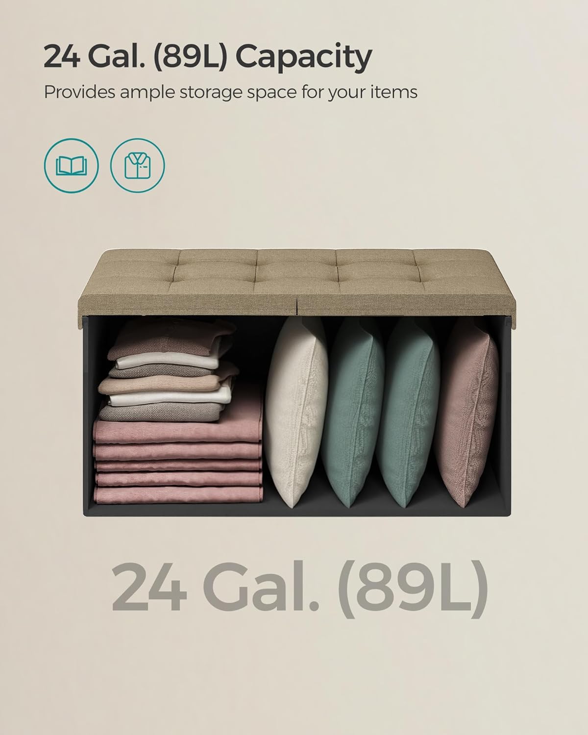 SONGMICS Mazie Collection - 30 Inches Storage Ottoman, Foldable Storage Bench with Flipping Lid, 660 lb Load Capacity, for Entryway, Living Room, Bedroom, Camel Brown ULSF046K01