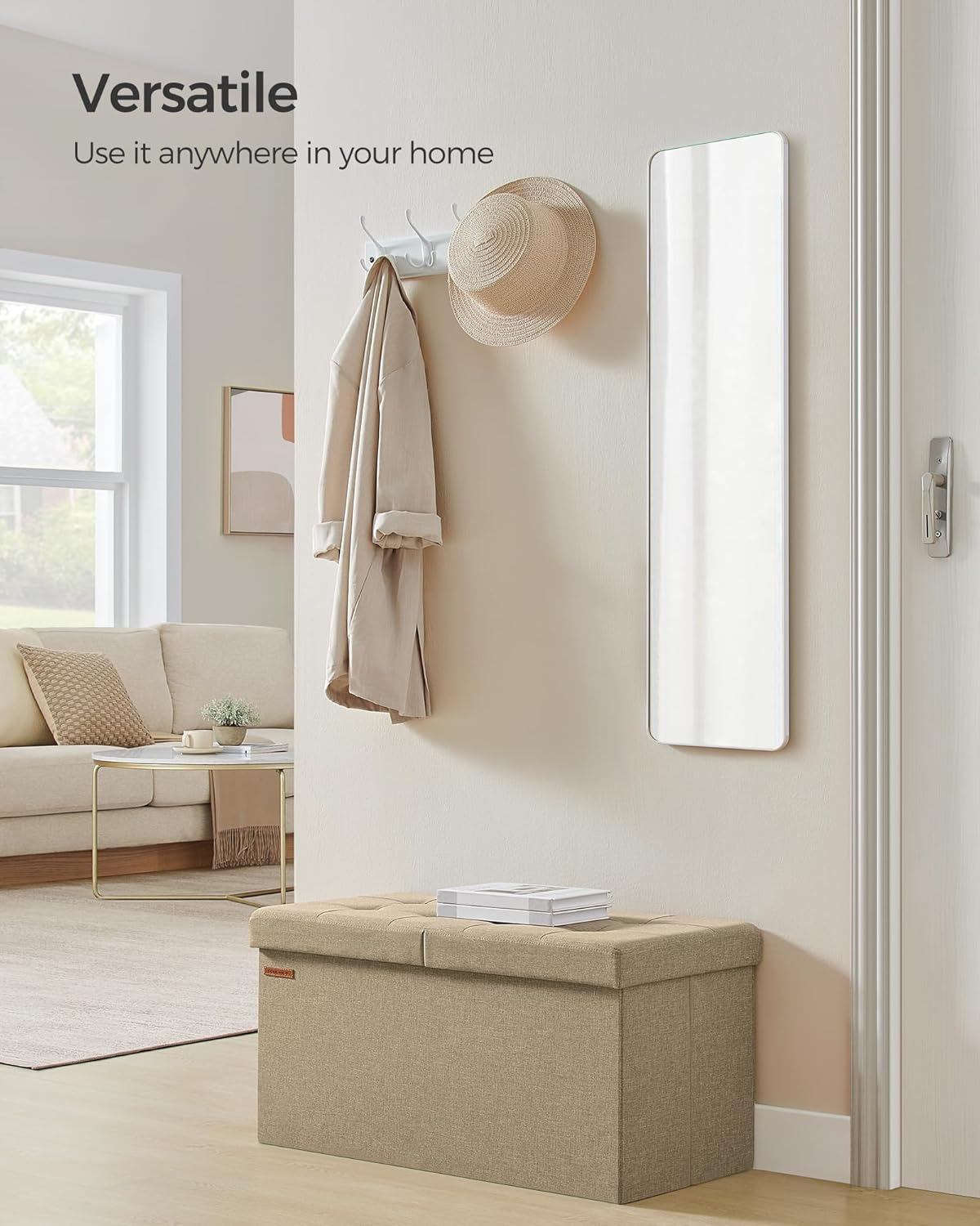 - ăQUICK ASSEMBLY, EASY FOLDAWAYăThis storage ottoman from the SONGMICS MAZIE Collection has a foldable design that allows quick setup in seconds by simply inserting the bottom panel. Easily fold and store it under the bed or in a closet when not in use