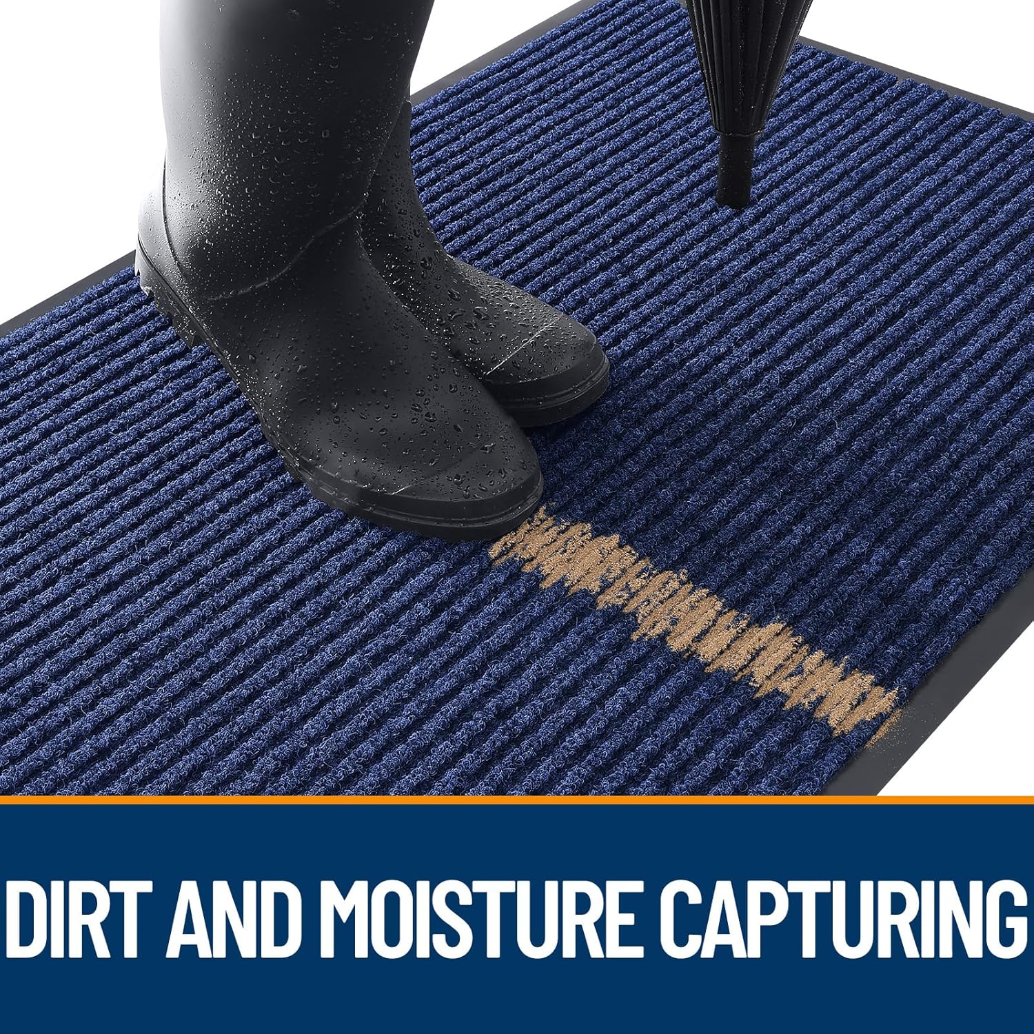 OLANLY Front Door Mat Indoor Outdoor Entrance, Waterproof Heavy Duty Doormat, Fade Resistant, Low Profile, Easy Clean Patio Porch Welcome Floor Mats for Entry, 47x23, Blue
