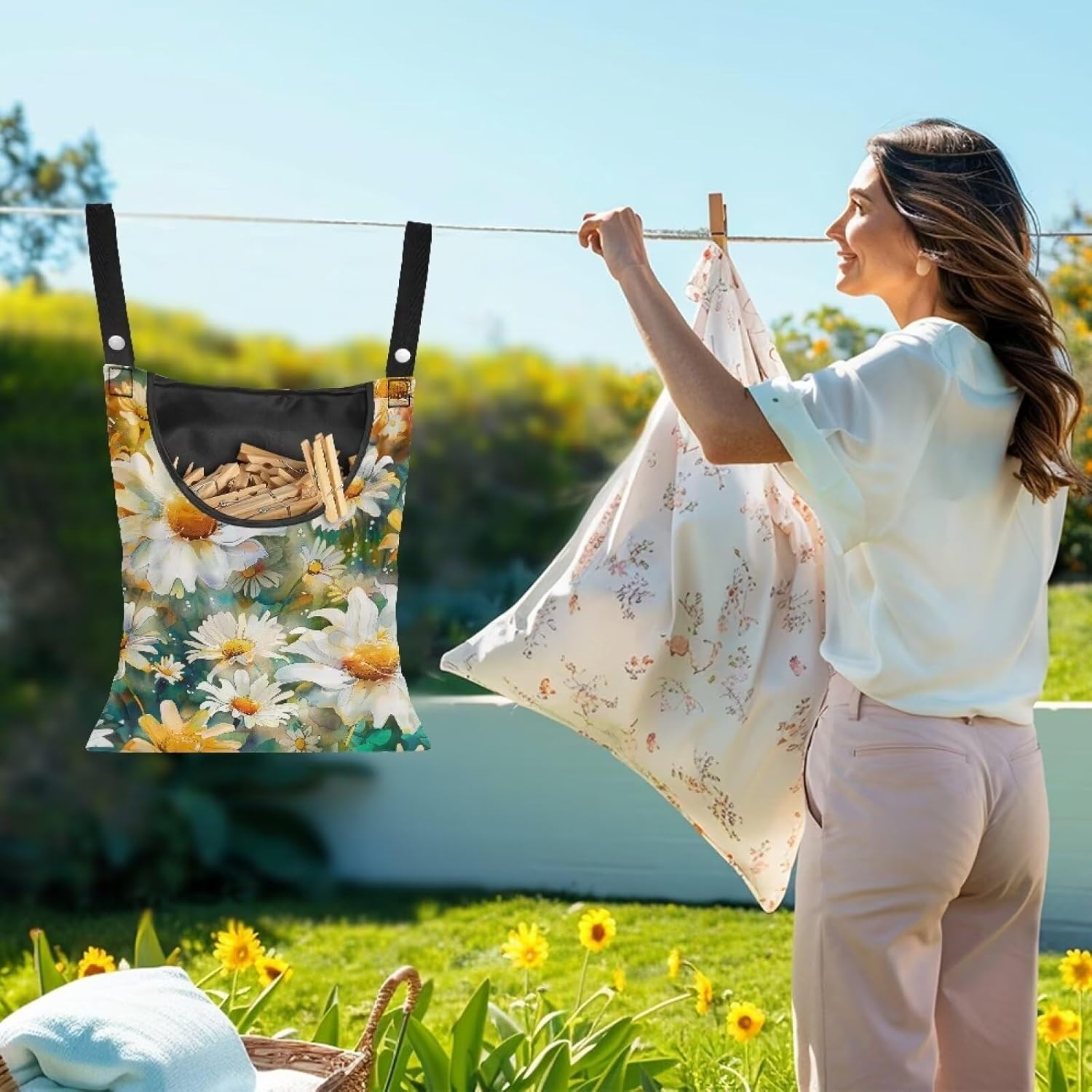 Daisy Clothespin Organizer Bag Shell Beach Clothespin Bags with Hanging Hook Waterproof Clothes Pin Storage Organizer with Large Opening Clothespin Bag for Clothesline Outdoor