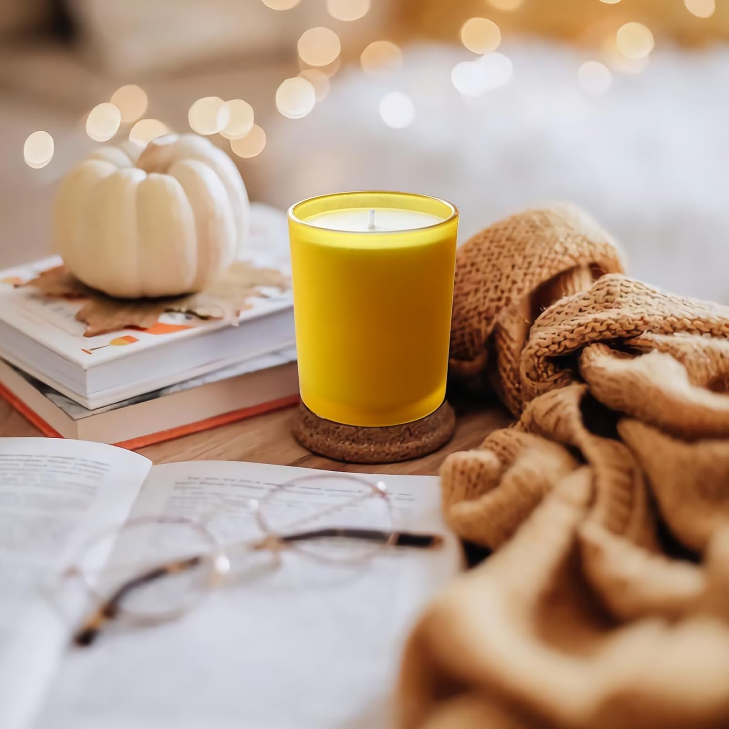 14 OZ Thick Candle Jars for Making Candles 12 Pcs, 3 Wick Empty Jars with Wood Lids for Candle Making, Sample Container, Frosted Yellow