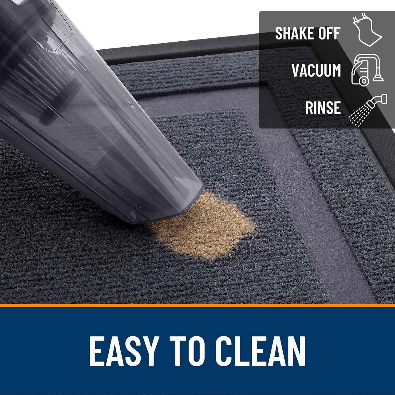 - [EASY TO CLEAN] The OLANLY front door mat is designed for quick and effective cleaning using a vacuum or traditional broom cleaning methods. Additionally, tapping and shaking the back of the doormat helps remove residual debris. For a deeper clean, rinse it with a garden hose and hang the mat in a ventilated place or dry it in a dryer. This versatile cleaning method ensures that your doormat stays clean and tidy, ready to welcome guests.