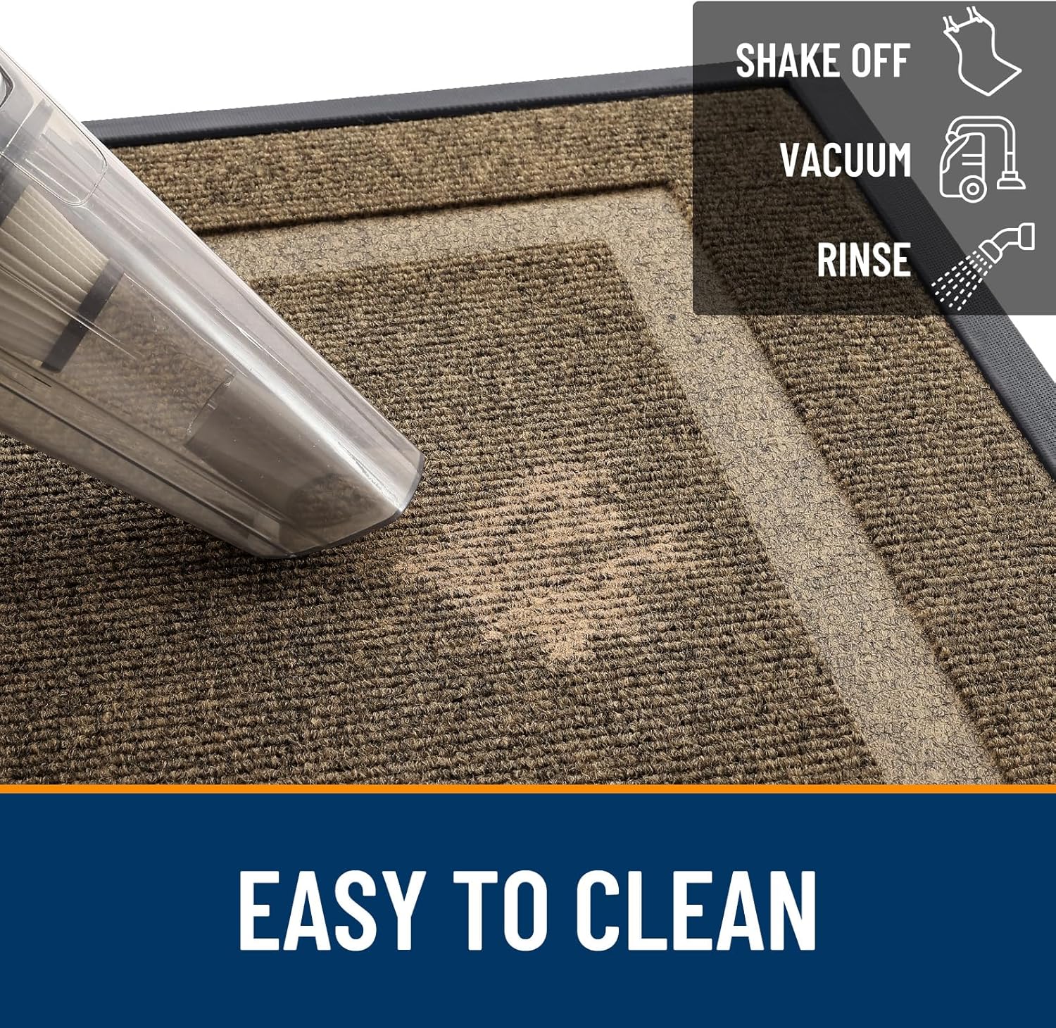 - [EASY TO CLEAN] The OLANLY front door mat is designed for quick and effective cleaning using a vacuum or traditional broom cleaning methods. Additionally, tapping and shaking the back of the doormat helps remove residual debris. For a deeper clean, rinse it with a garden hose and hang the mat in a ventilated place or dry it in a dryer. This versatile cleaning method ensures that your doormat stays clean and tidy, ready to welcome guests.