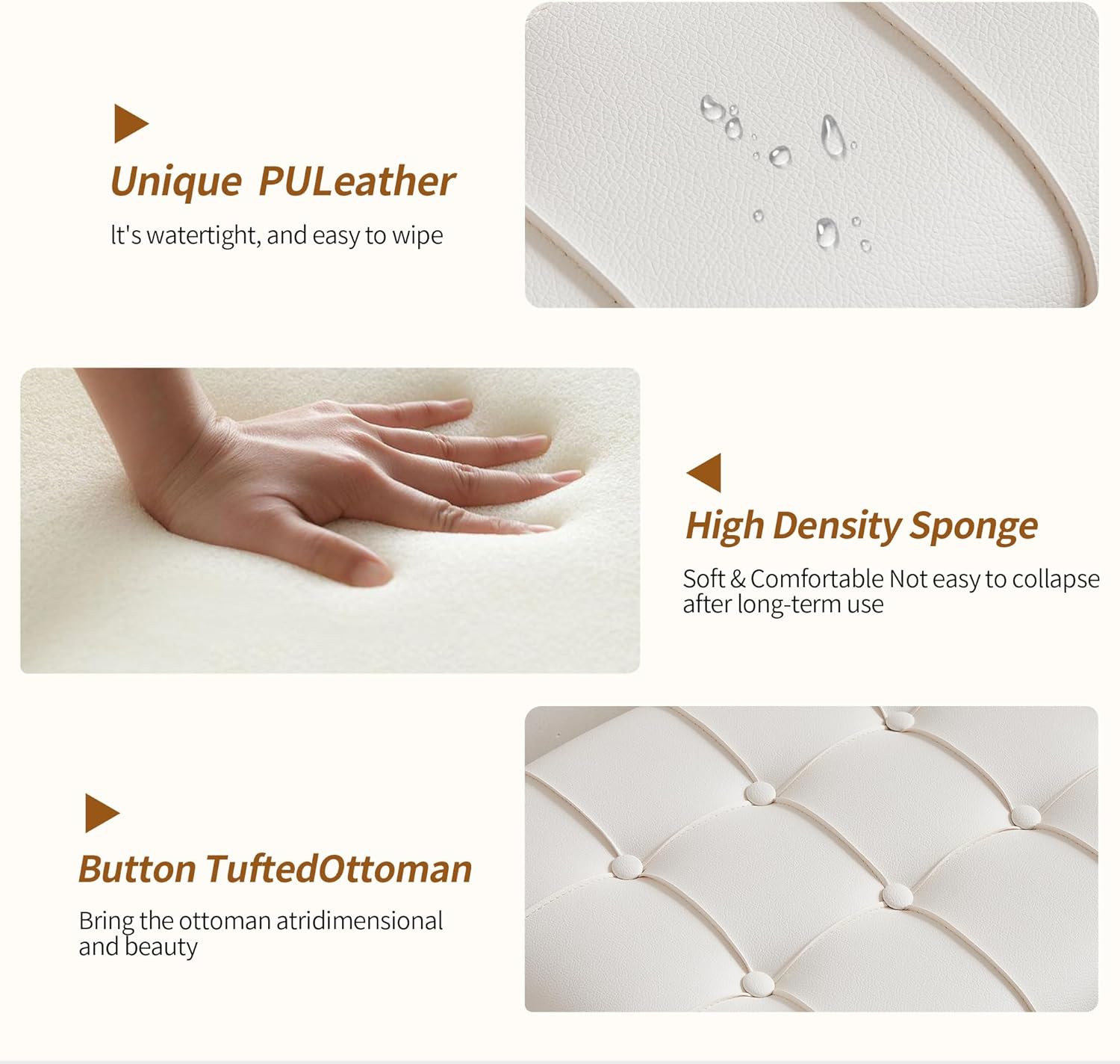 Small 38 Inches Long White Ottoman Bench with Storage,Footstool Furniture End of Bed Benches,Faux Leather Ottomans and Seat for Foot Rest in Bedroom, Living Room, Entryway