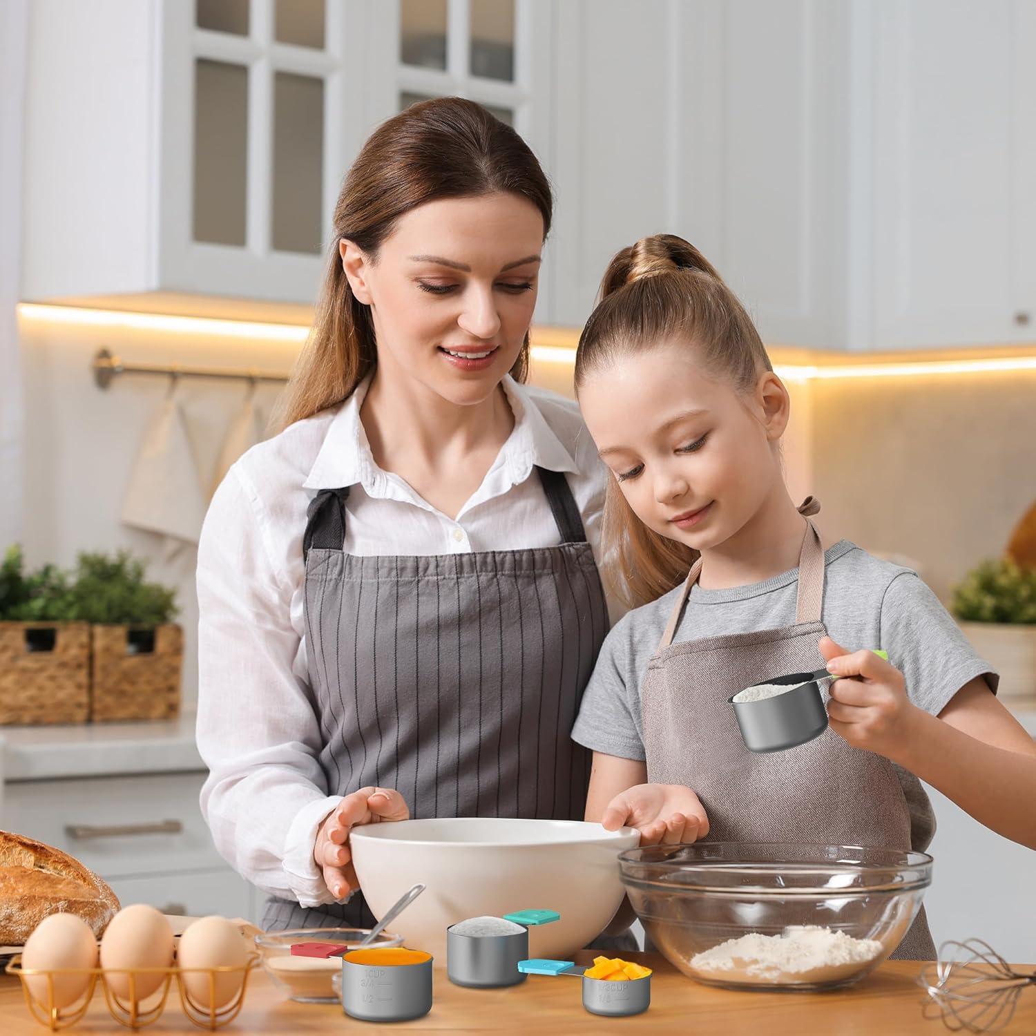 - Great Gift Idea - Our rust-resistant and durable measuring cups and spoons make a perfect holiday gift for both beginner and expert cooks in your life. Perfect for both dry and liquid ingredients, these kitchen gadgets will make baking and cooking a breeze.