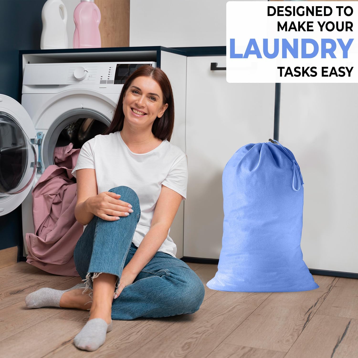 2 Pack - Extra Large Cotton Laundry Bag, Heavy Duty Large Laundry Bags 24 x 36 inch XL Drawstring Travel Organizer Bag Fit Hamper Basket Camp (BLUE, Pack of 2)