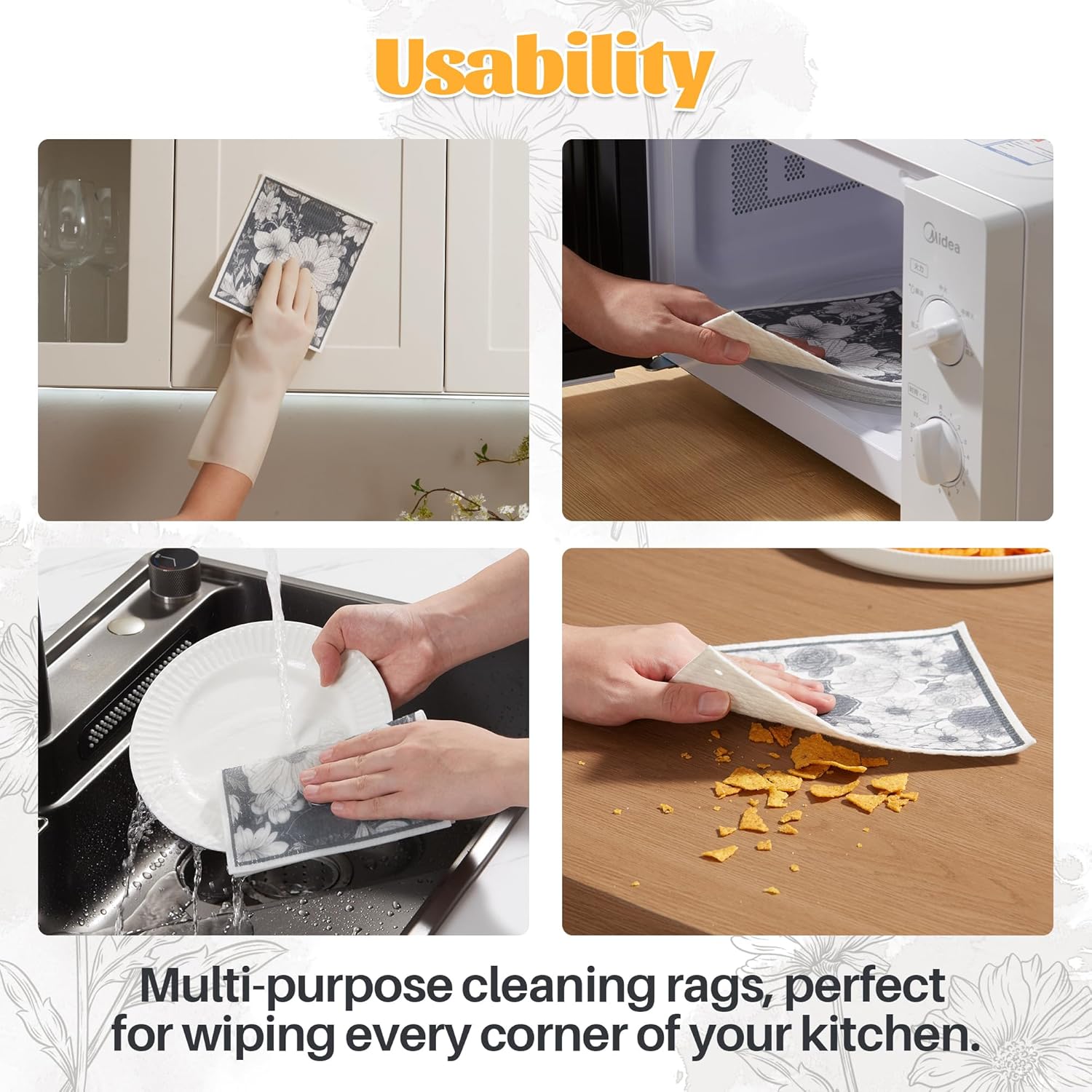 - [Nature & Reusable] The Cleaning Cloth are made of cellulose fiber, which help them keep good shape without deformation or falling apart even after long-time uses. Perfect choice for durable and sturdy use