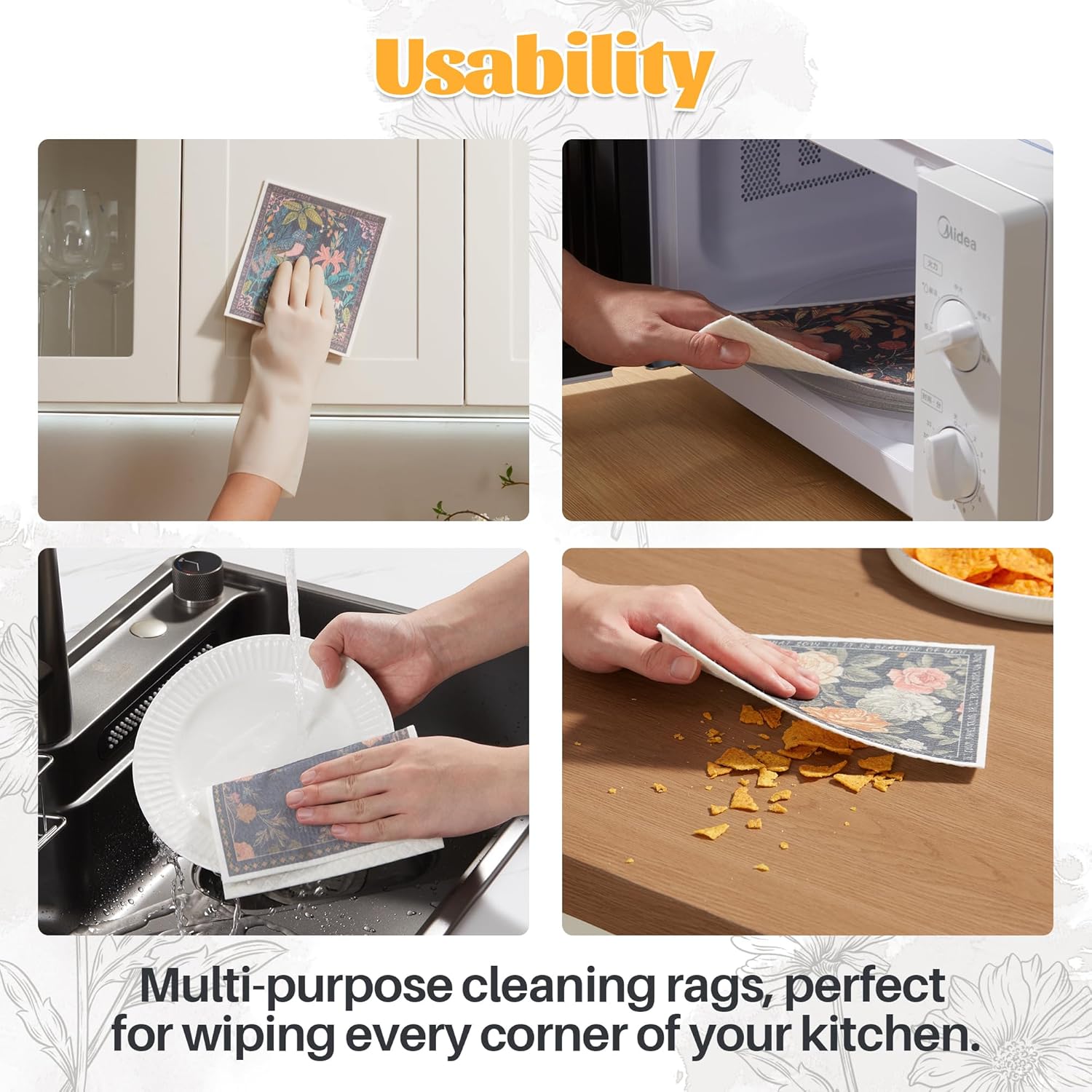 - [Nature & Reusable] The Cleaning Cloth are made of cellulose fiber, which help them keep good shape without deformation or falling apart even after long-time uses. Perfect choice for durable and sturdy use!
