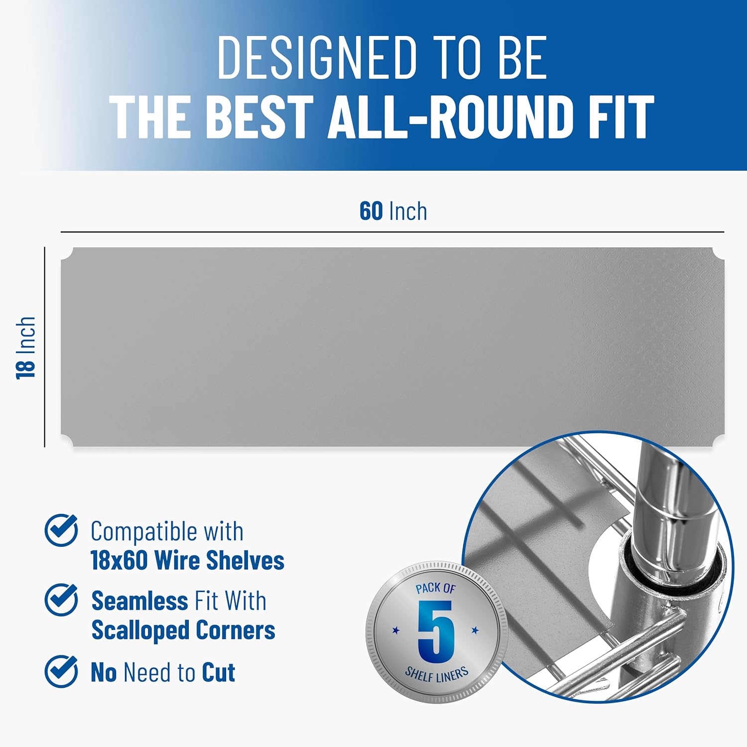 Shelf Liners for Wire Shelf System: Set of 5 in Graphite: 18 x 60 inch: Plastic Wire Shelving Shelf Mats