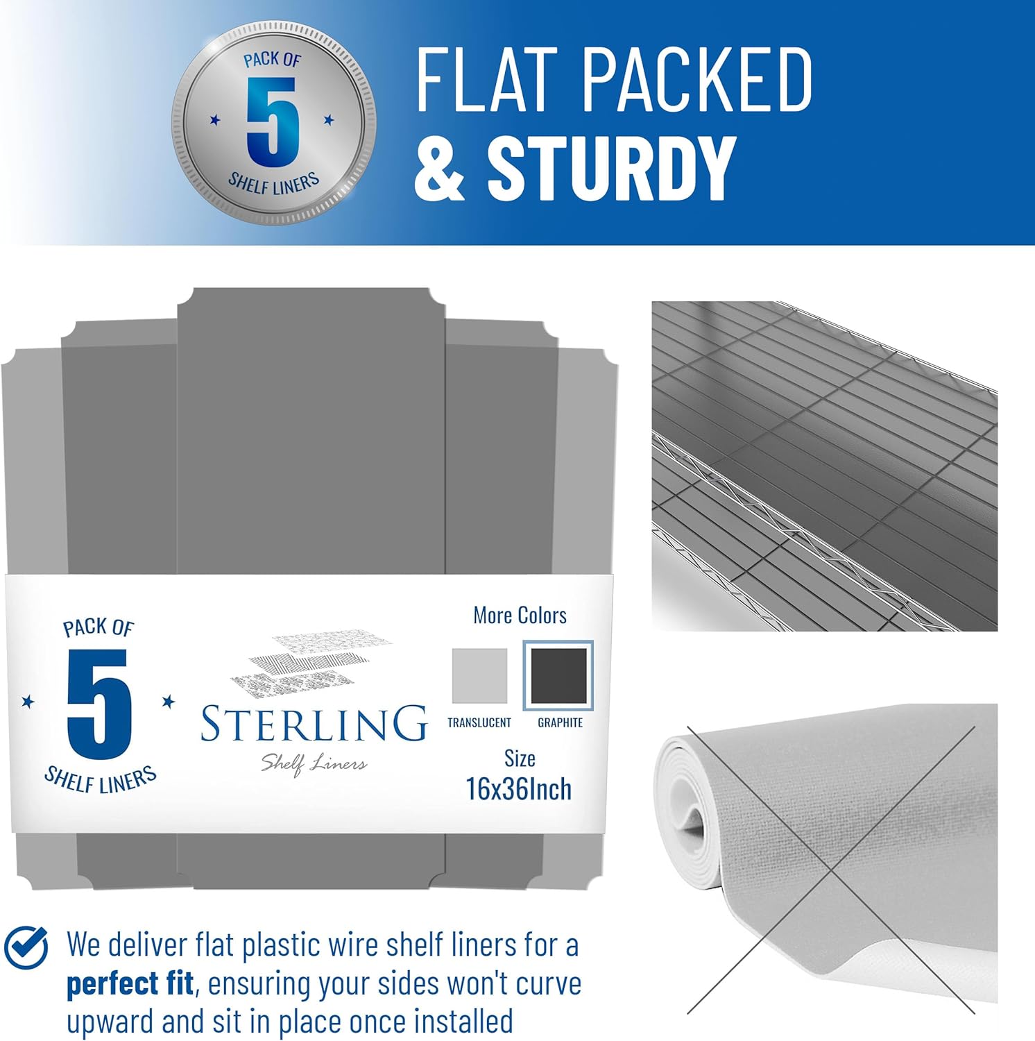 Sterling Shelf Liners for Wire Shelf System: Set of 5 in Graphite: 16 x 36 inch: Plastic Wire Shelving Mats