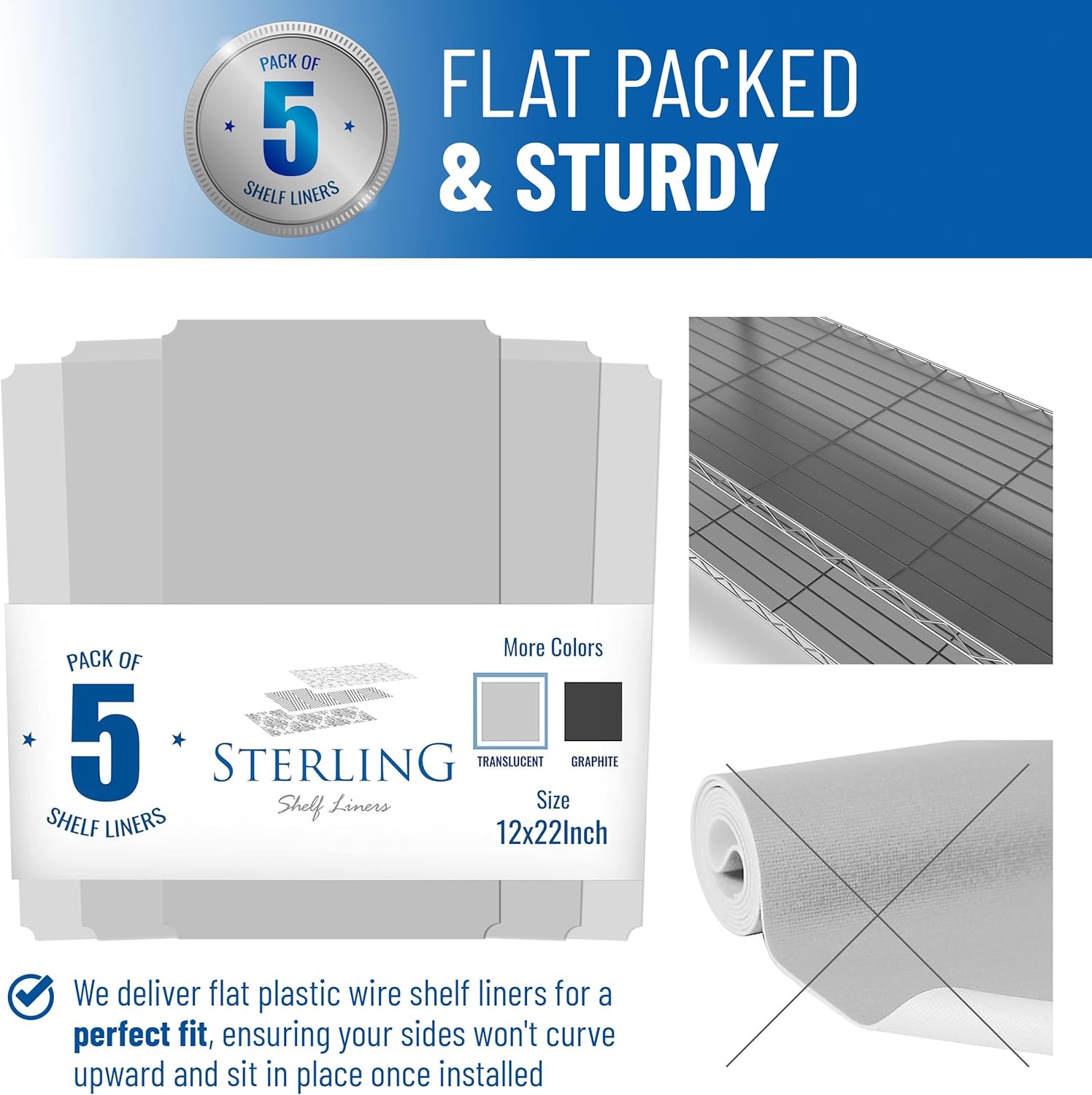 - Flat Packed & Sturdy: We deliver perfectly flat packaged plastic wire shelf liners to ensure your sides won't curve upward and they sit perfectly flat once installed.