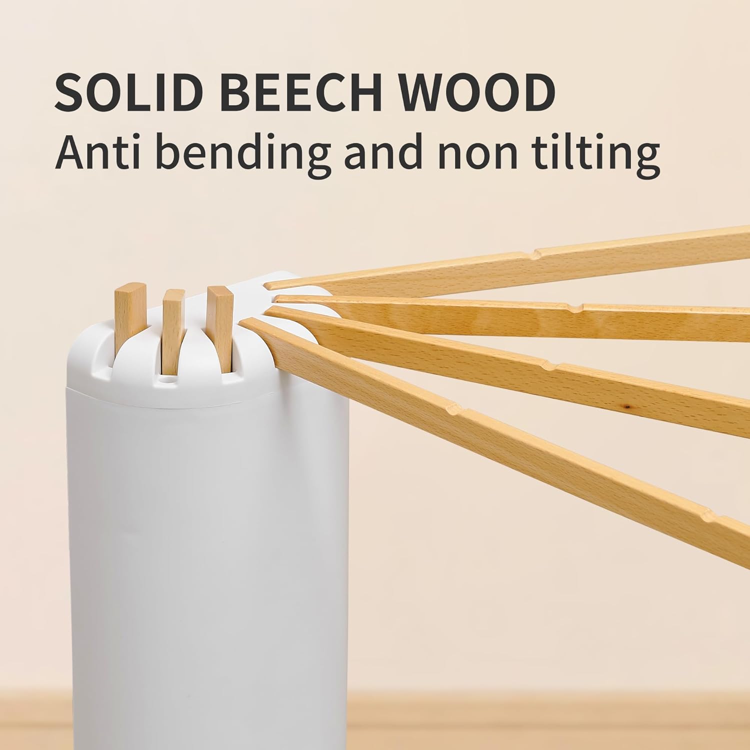 - Sturdy and Durable:Tripod clothes drying rack rods are made of Beech Wood, stronger, and more durable;Solid wood adds quality to life, and compact drying racks for laundry are strong and stable