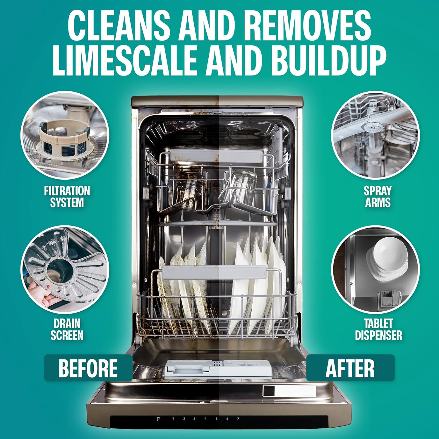 - Each dishwasher cleaner and deodorizer tablet powers through grease, grime, and buildup—helping maintain spray arms, filters, and hidden components for better dishwasher performance. Designed for monthly deep cleaning.