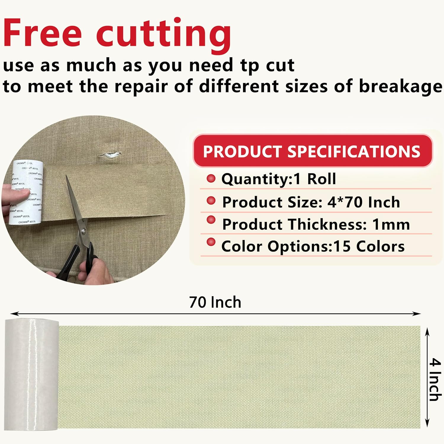 Linen Repair Tape 4x70 Inch Self-Adhesive Couch Patch Repair Fabric Patch for Furniture,Sofas,Cushion,Chairs,Bags,Linen Goods(Off-White)