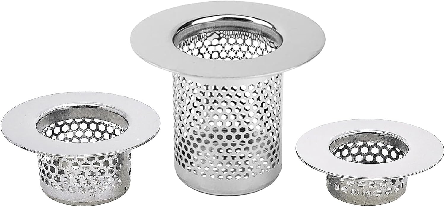 - Effective Filtering & Efficient Anti-Clogging: This drain hair catcher set features a reasonable combination in different height with different tiny hole size that allows for efficient drainage while effectively trapping hairs and debris, helping to prevent clogs in your bathroom sink, tub or shower drain.