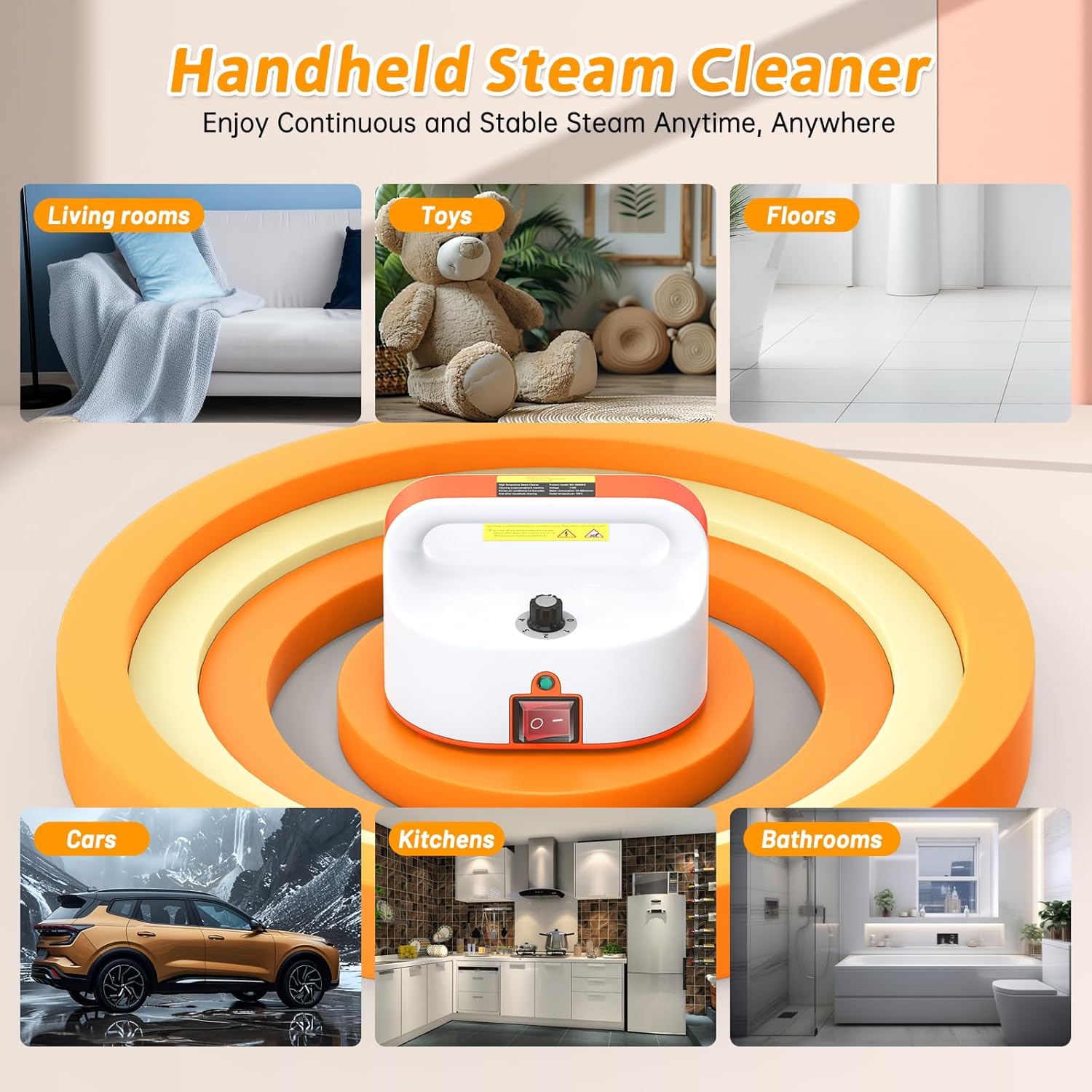 4.5BAR Handheld Steam Cleaner, 2500W Portable Steam Cleaner for Home for Car Kitchen Furniture Floors Cleaning, Tankless Design, 6-Speed Pressurized Steam Machine with 3 Brush Heads, Orange
