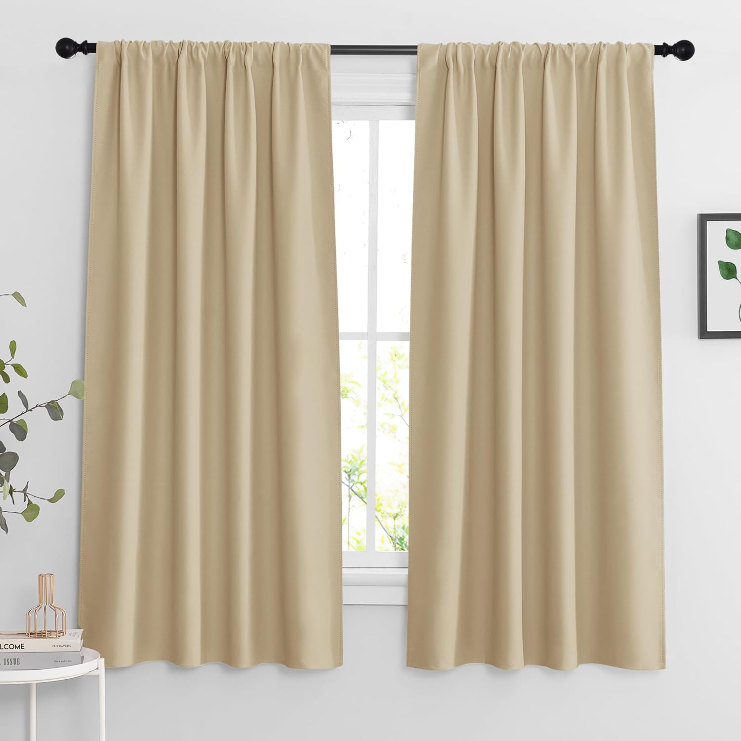 RYB HOME Curtains for Bedroom 63 inches Long, Blackout Thermal Insulating Window Treatment Drapes for Living Room Bathroom Basement Laundry Classroom, W 34 x L 63, Biscotti Beige, 2 Panels