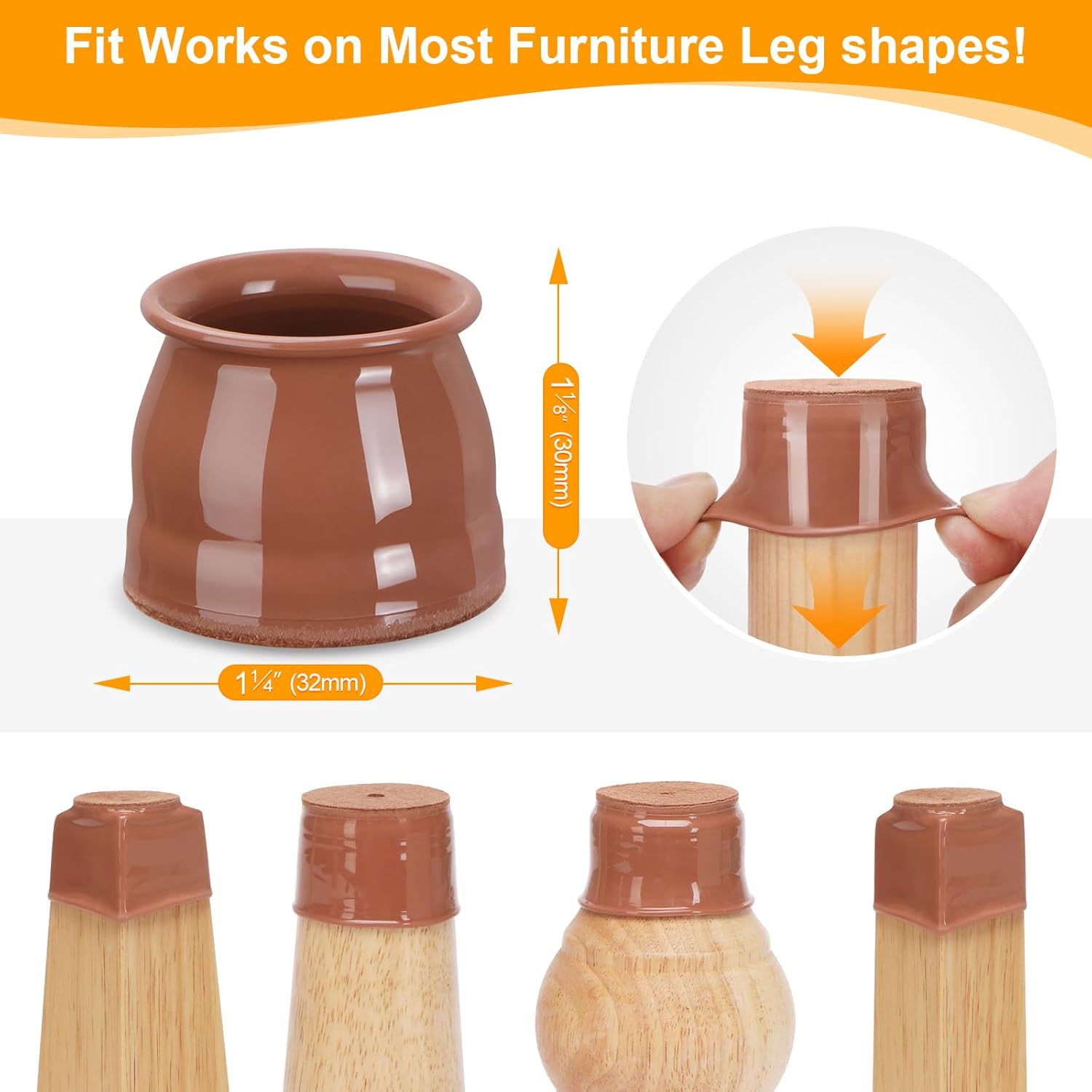 CHUNZEXI 32 Pack Chair Leg Floor Protectors for Hardwood Floors, Silicone Felt Covers Pads Caps, Protect Wood Furniture Feet Floors Noise Reduce and Scratch (Universal Small & Brown)