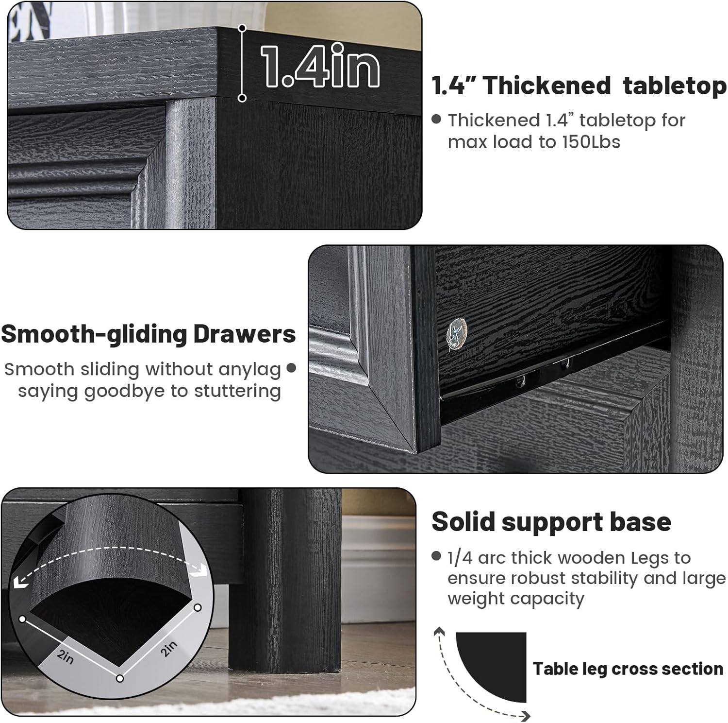 - Sturdy & Durable: The frame is made of FSC-certified wood, scratch-resistant, hard to flex or crack, and suitable for long-term use. The top table of the 1.4" thick dresser top can support up to 150 lbs. The widened 2’’ * 2’’ dresser legs made the dresser does not slide easily. Wide closet dresser equipped with wall anchors and anti-tip metal plate at the base bottom that eliminating any tipping concerns, protecting you and your family's safety