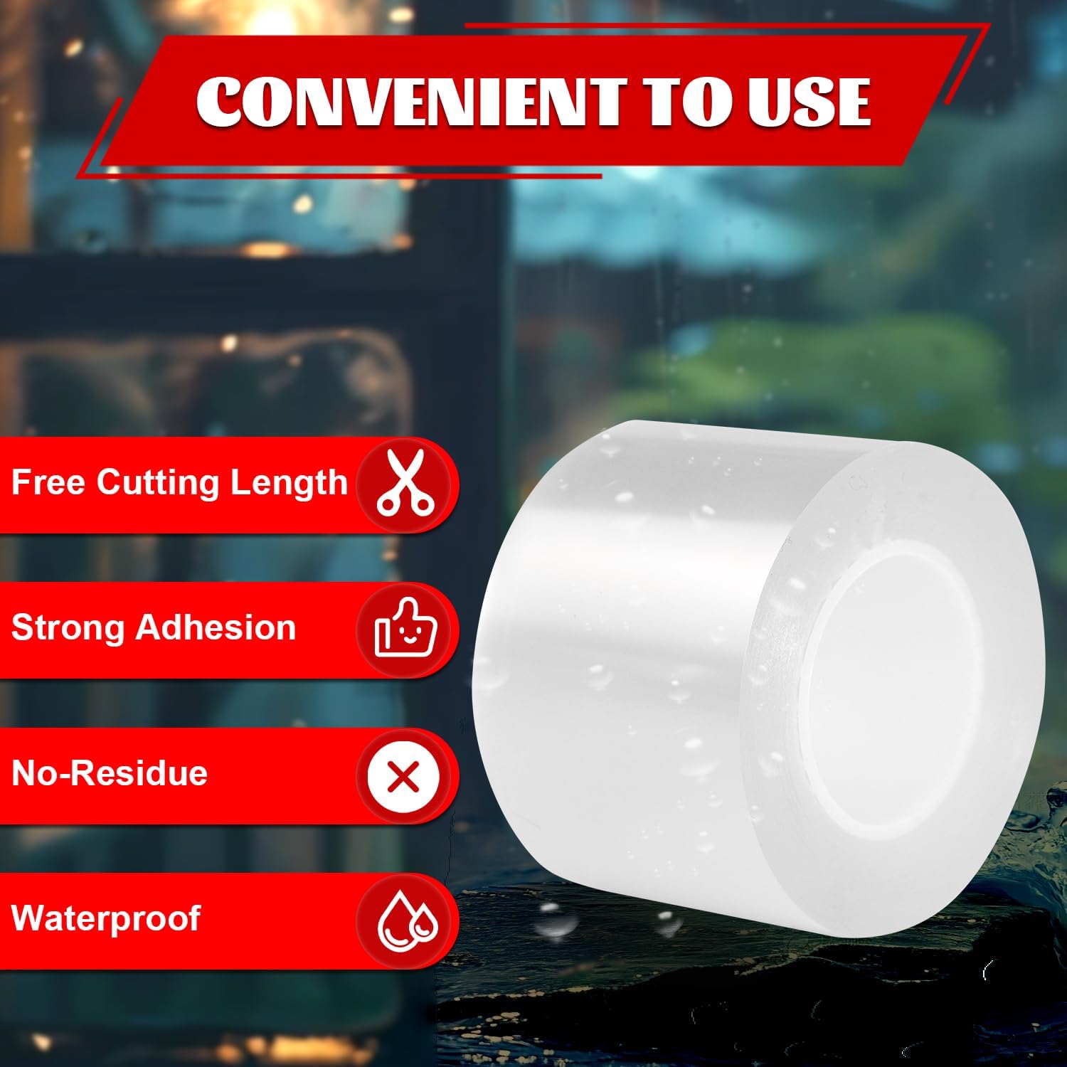 - Strong Adhesive but surface safe adesive: Transparent weather sealing tape is made of high-quality, weather-resistant materials that can withstand extreme temperatures, moisture, and DIY repair to sealing on windows,doors. Sticks strongly while being residue-free, removable and surface-safe