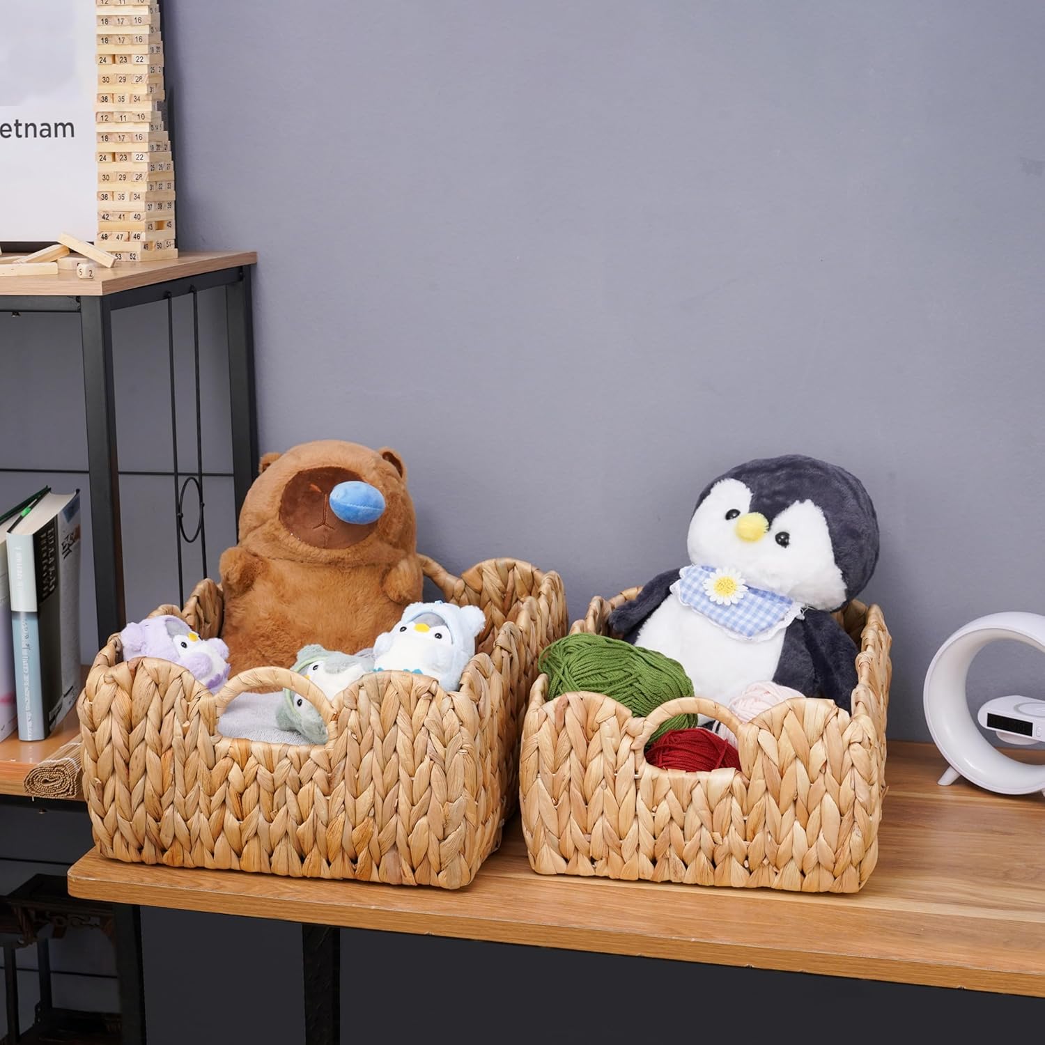 - 🎯 【Wide Applicantion】: Versatile large rectangular hyacinth baskets are perfect for storing bath towels, toiletries, magazines, games, pet toys, media, or other household items.