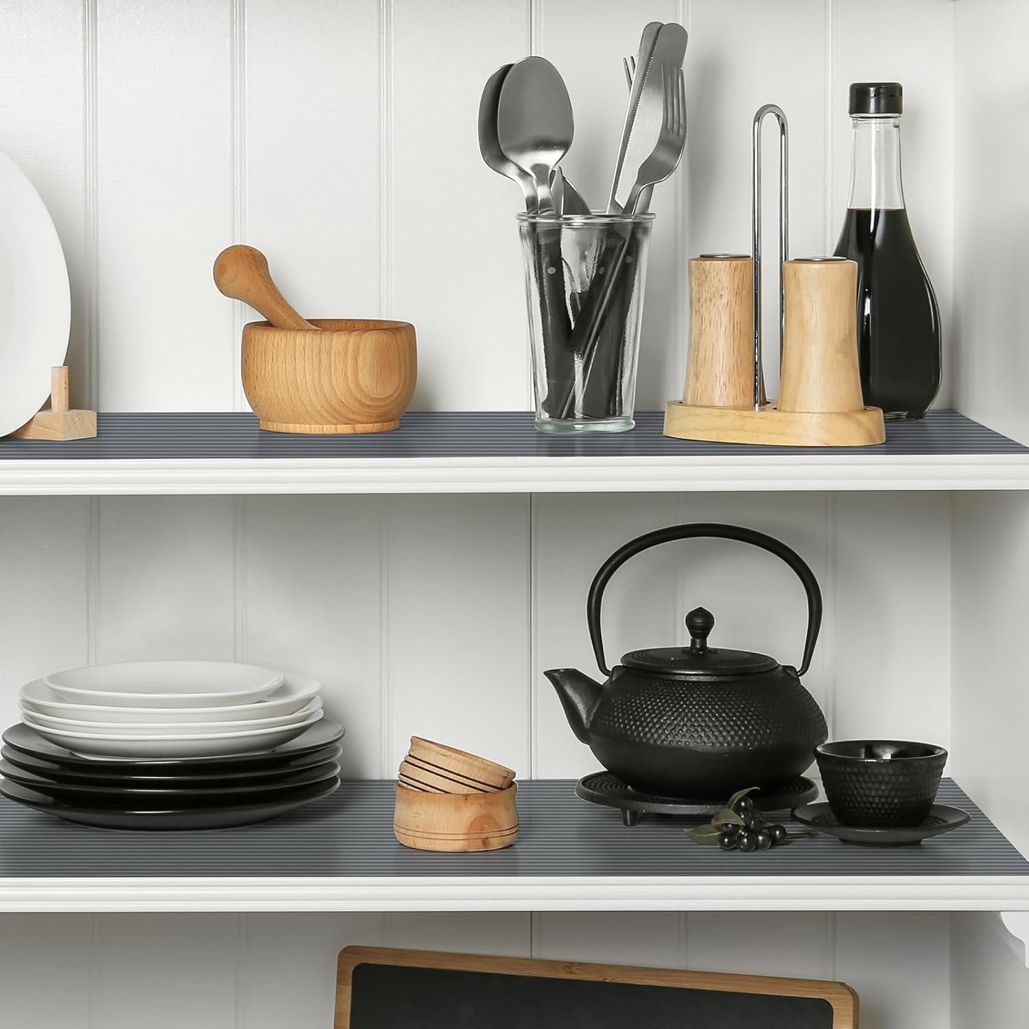 Shelf Liners for Kitchen Cabinets Drawer Liner Non Adhesive Cupboard Mat EVA Material Waterproof Refrigerator Mats Washable Fridge Liner for Cupboard and Desks Liner Gray 17.3 x 236.2 Inches
