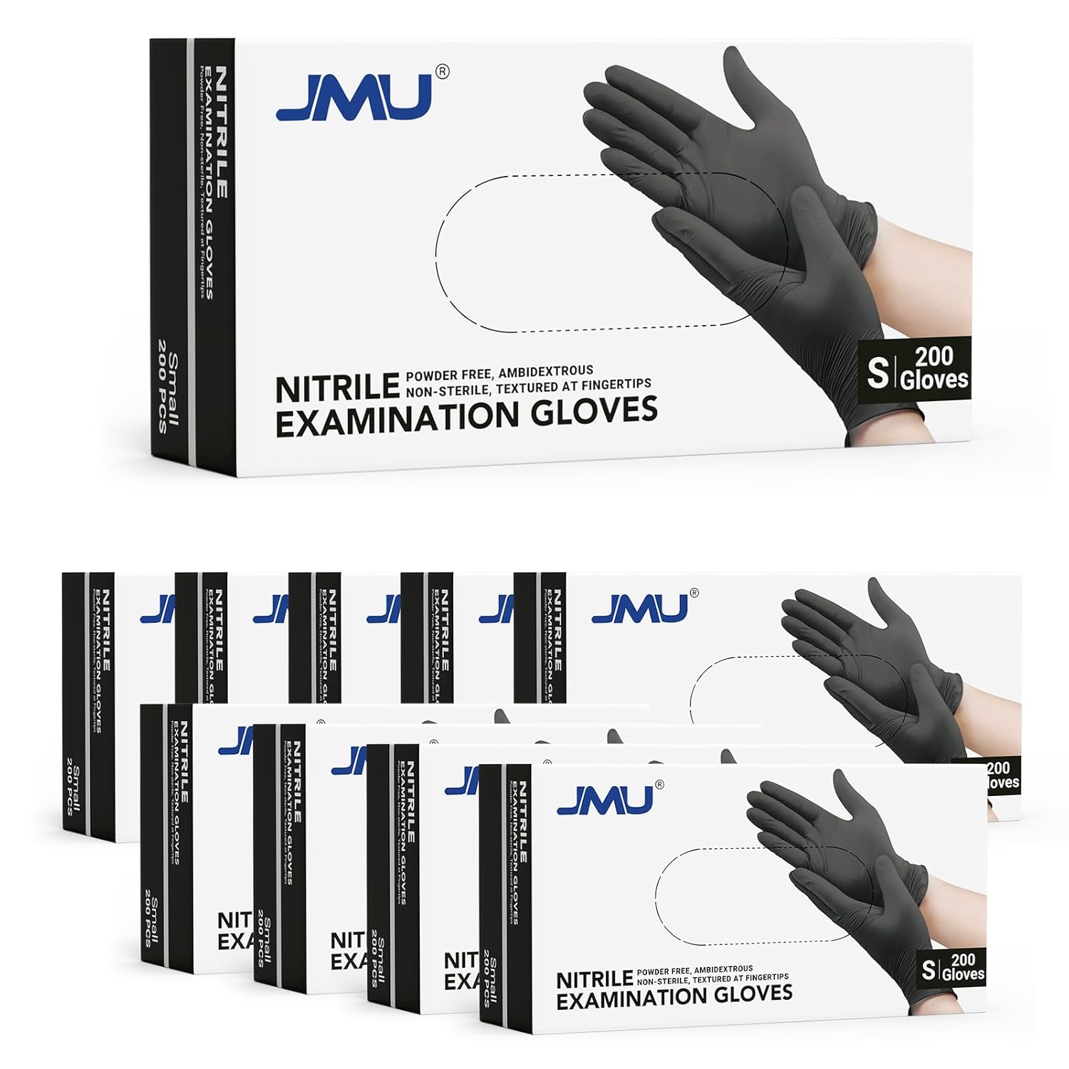 JMU Black Nitrile Exam Gloves Small Bulk 2000 Count, 3.5Mil Disposable Gloves, Latex Free, Powder Free