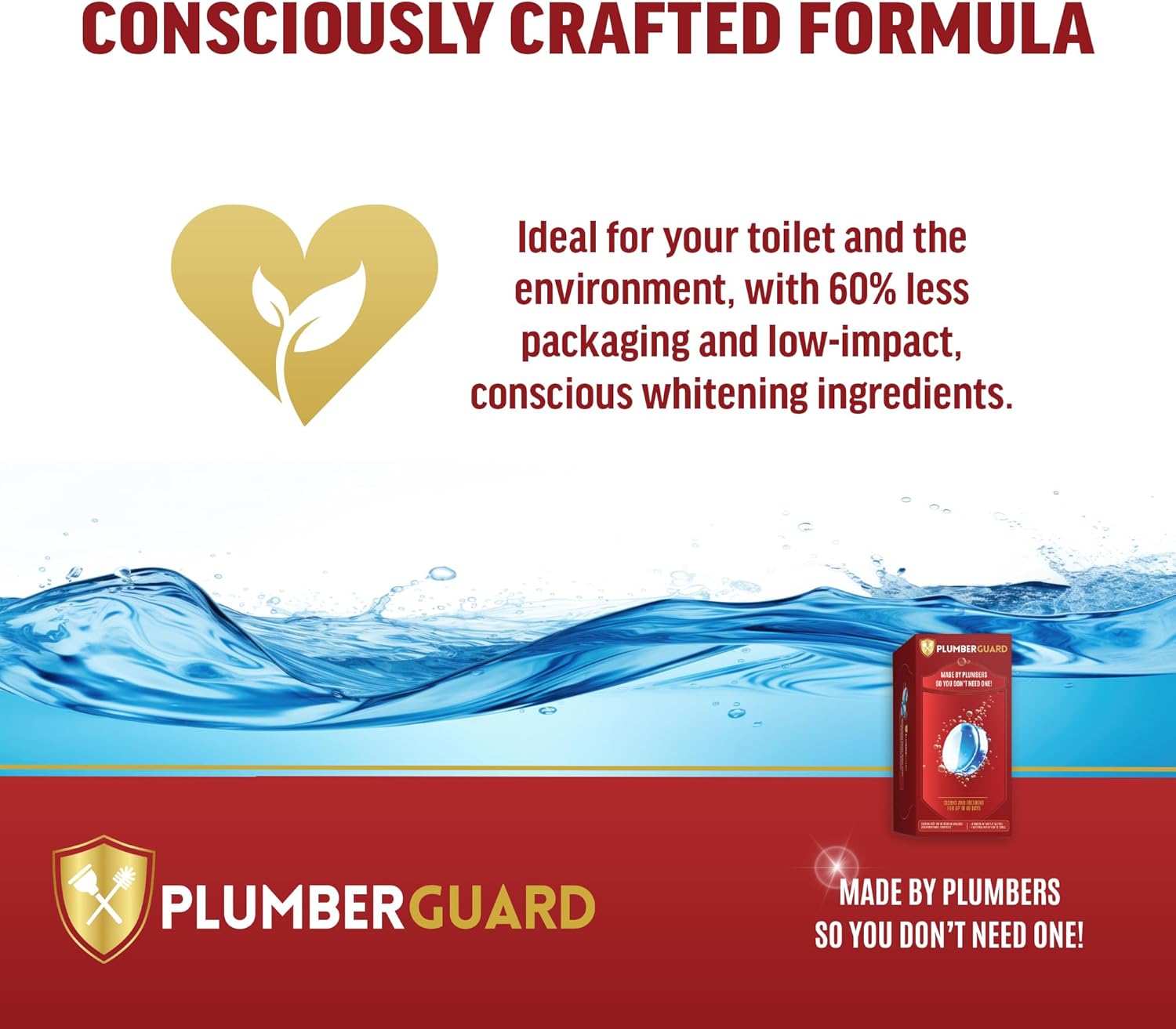 - Effective Cleaning: PLUMBERGUARD is formulated with a low-impact chelating agent and whitening agents, designed by plumbers for a powerful yet gentle clean. It actively whitens while fighting tough stains, rust, mineral deposits, and limescale buildup, ensuring a pristine toilet bowl without harsh chemicals.