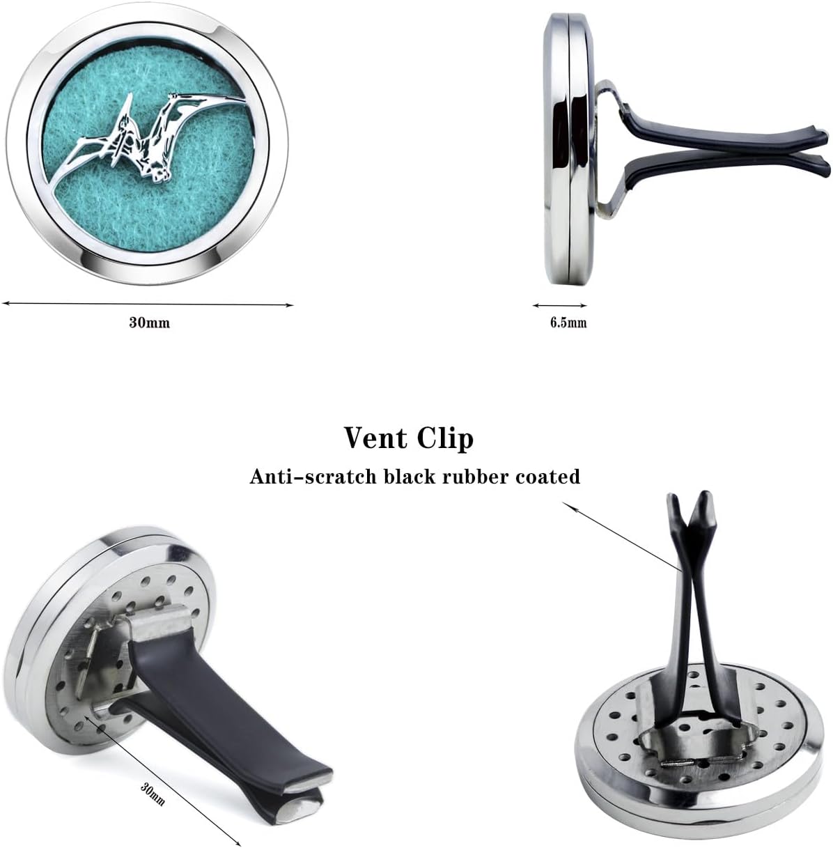 - 【Material 】High quality 316L stainless steel 30mm car diffuser vent clip, solid and smooth, anti-corrosion, easy to clean, we pair our diffuser car vent with reusable 10 color refill pads. Complete with a solid back and two magnets for a secure close, you’ll never have to worry about getting essential Oil all over your car.