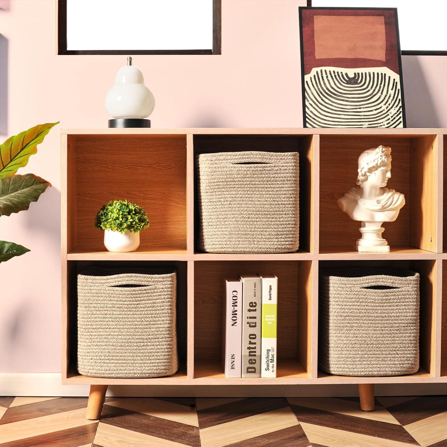 - Natural Cotton Rope Baskets for Storage: Our 11x11 cube storage bins are all made of natural cotton. These storage baskets for shelves are soft, durable, foldable and safe for children and pets. Using our woven baskets for storage to organise and store your home will give you peace of mind