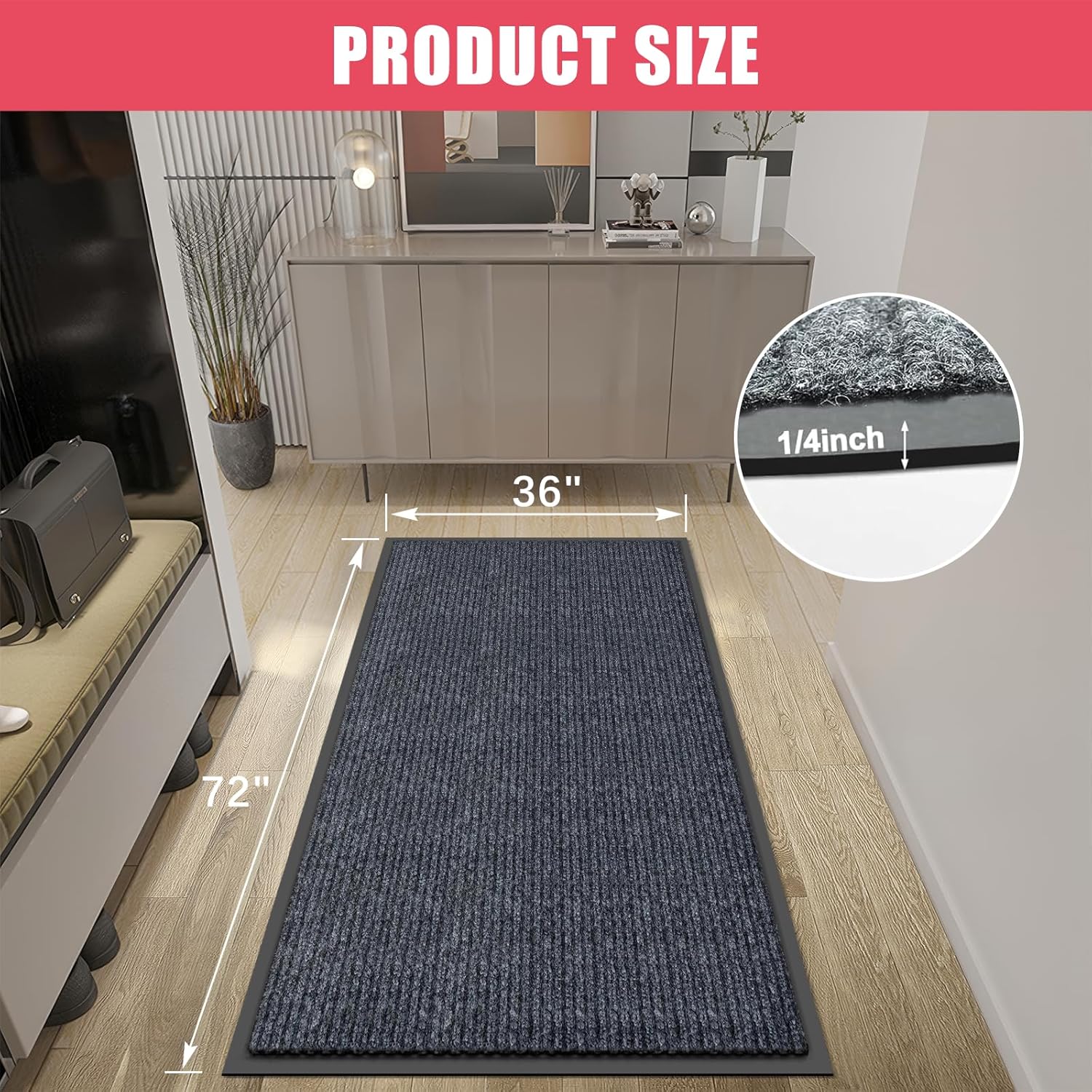 - [VERSATILE SIZE OPTIONS] We offer a wide range of sizes for our outdoor door mat, including 24‘’*36‘’,24‘’*48‘’,,24‘’*72‘’,36" x 48",36" x 60",36" x 72",36" x 120",48" x 72",48" x 96". Whether you need a doormat for a small entryway or a large outdoor patio, we have the perfect size to fit different door entrances and spaces. Our heavy-duty oversized doormat is also suitable for commercial use, making it a versatile choice for various settings.