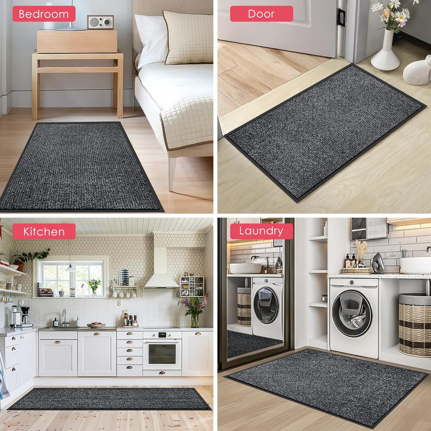 - [STRONG Non-Slip BACKING] Our indoor/outdoor entrance door mats are made of premium polyester and textured PVC rubber backing to ensure long-lasting performance in any season. The sturdy construction can withstand high foot traffic without snagging or curling. Ideal for busy areas such as doorways and porche.