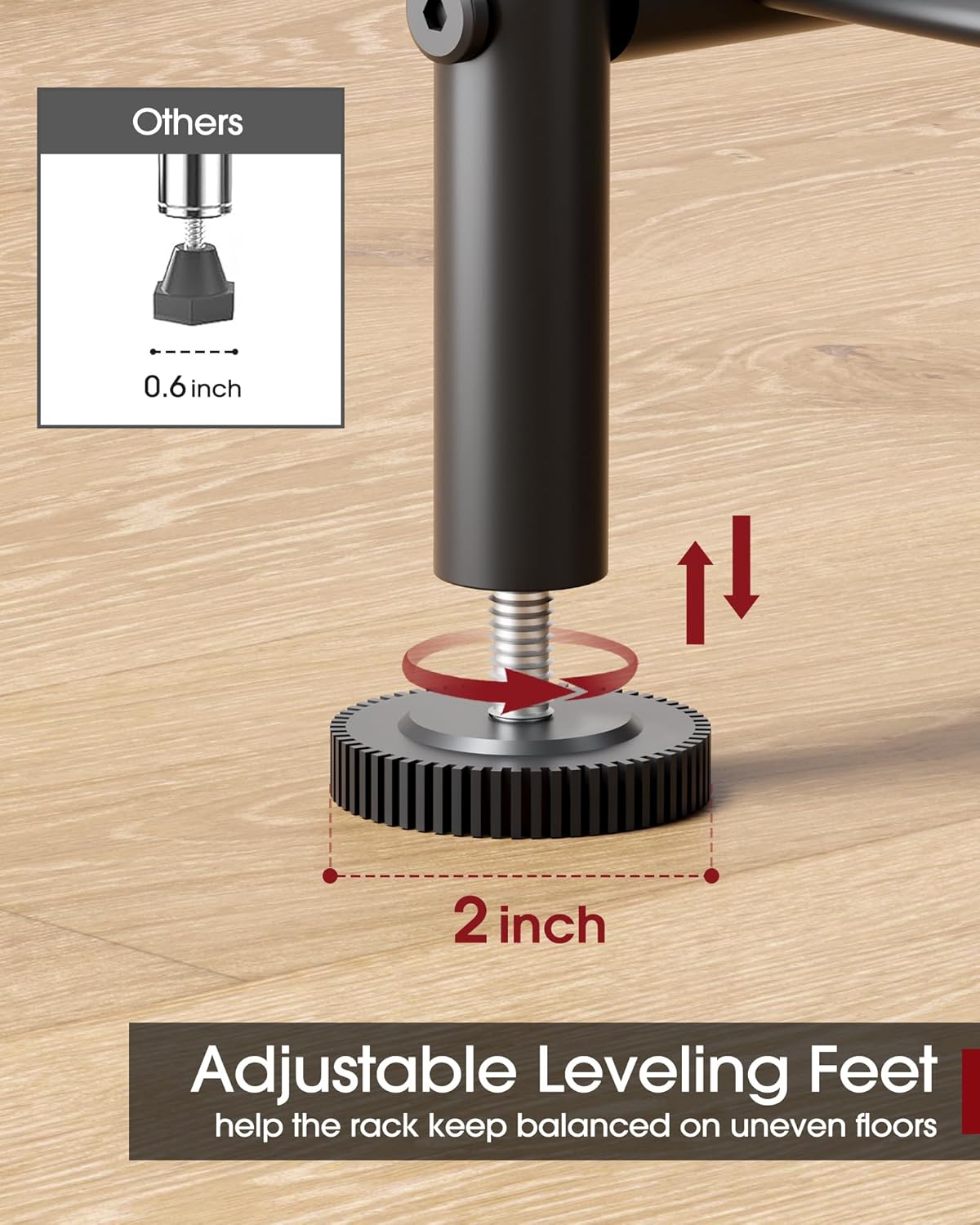 - ALWAYS KEEP STABLE: With reinforced construction, the Sakugi sturdy display shelf can hold up to 100 lbs per shelf, providing secure storage for heavier items. The small shelf features 4 large, adjustable leveling feet, which ensures stability even on uneven floors. Just customize each foot to prevent wobbling and create a balanced setup that keeps all items safe and steady.