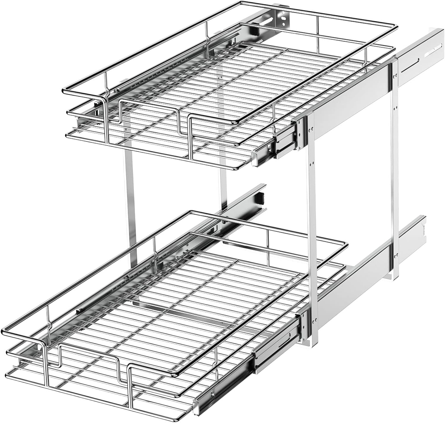 LOVMOR 2 Tier Individual Pull Out Cabinet Organizer 11½" W x 21½" D, Slide Out Kitchen Cabinet Storage Sliding Shelves
