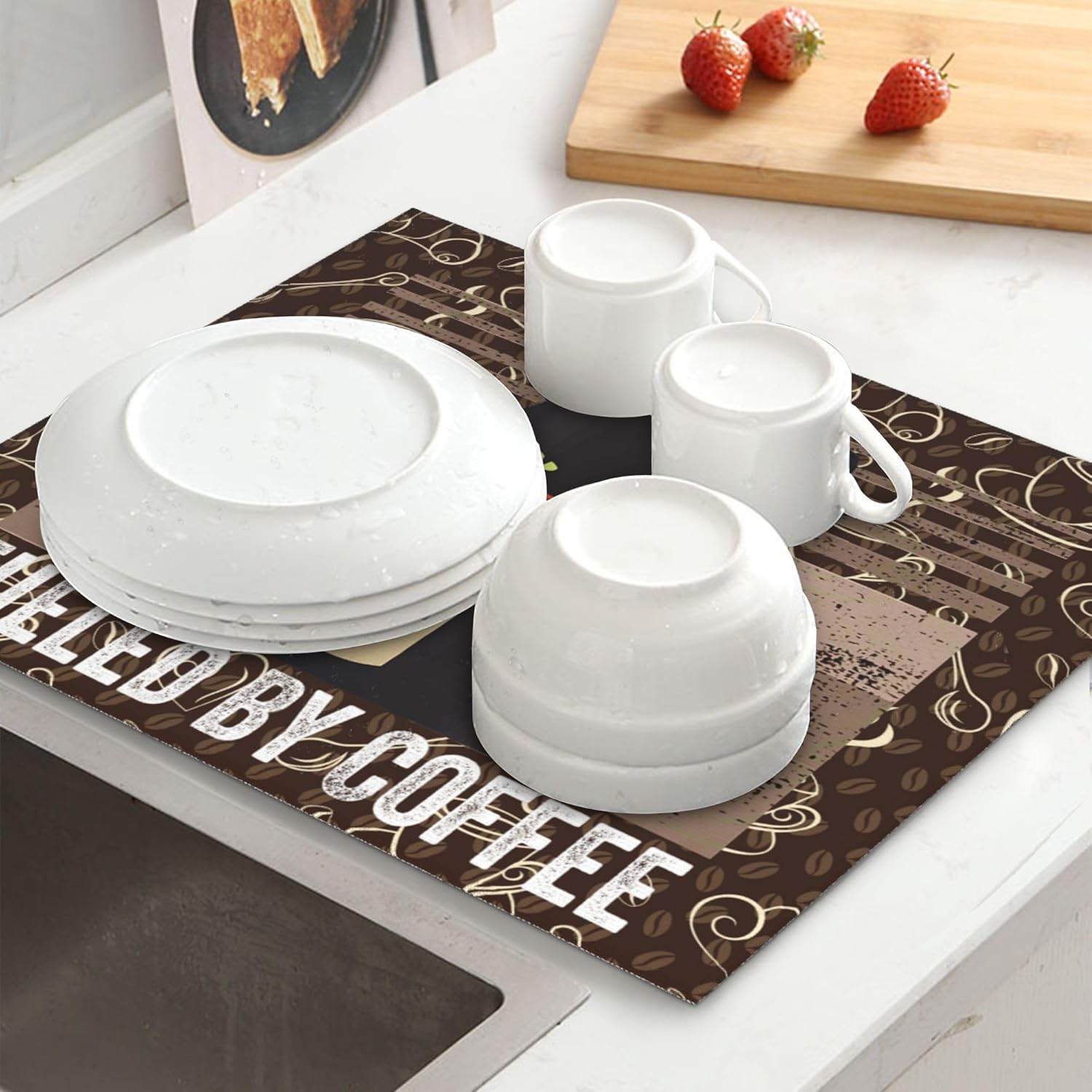Vintage Cat Dish Drying Mat for Kitchen Counter Retro Coffee Dish Drainer Rack Mats 16x18 Inches Absorbent Reversible Decorative Drying Pad