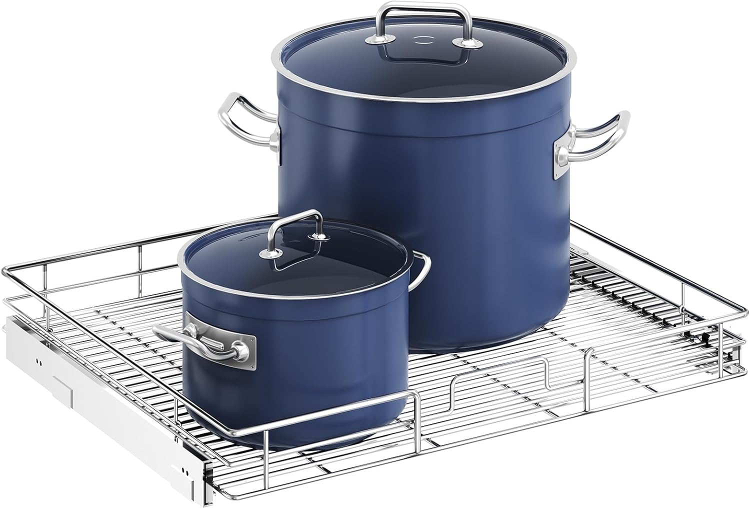 - ăSpace-saving Pull Out Cabinet OrganizerăThis slide out cabinet organizer can maximize your cabinet space. Makes it super easy to store, organize, and access your stand mixers, pots, pans, baking sheets and other kitchen accessories, cleaning supplies, and various odds and ends. Now your cabinet is no longer just stacks of pots pans. You can contact seller via Amazon Messages to make sure if the size fit your cabinet.
