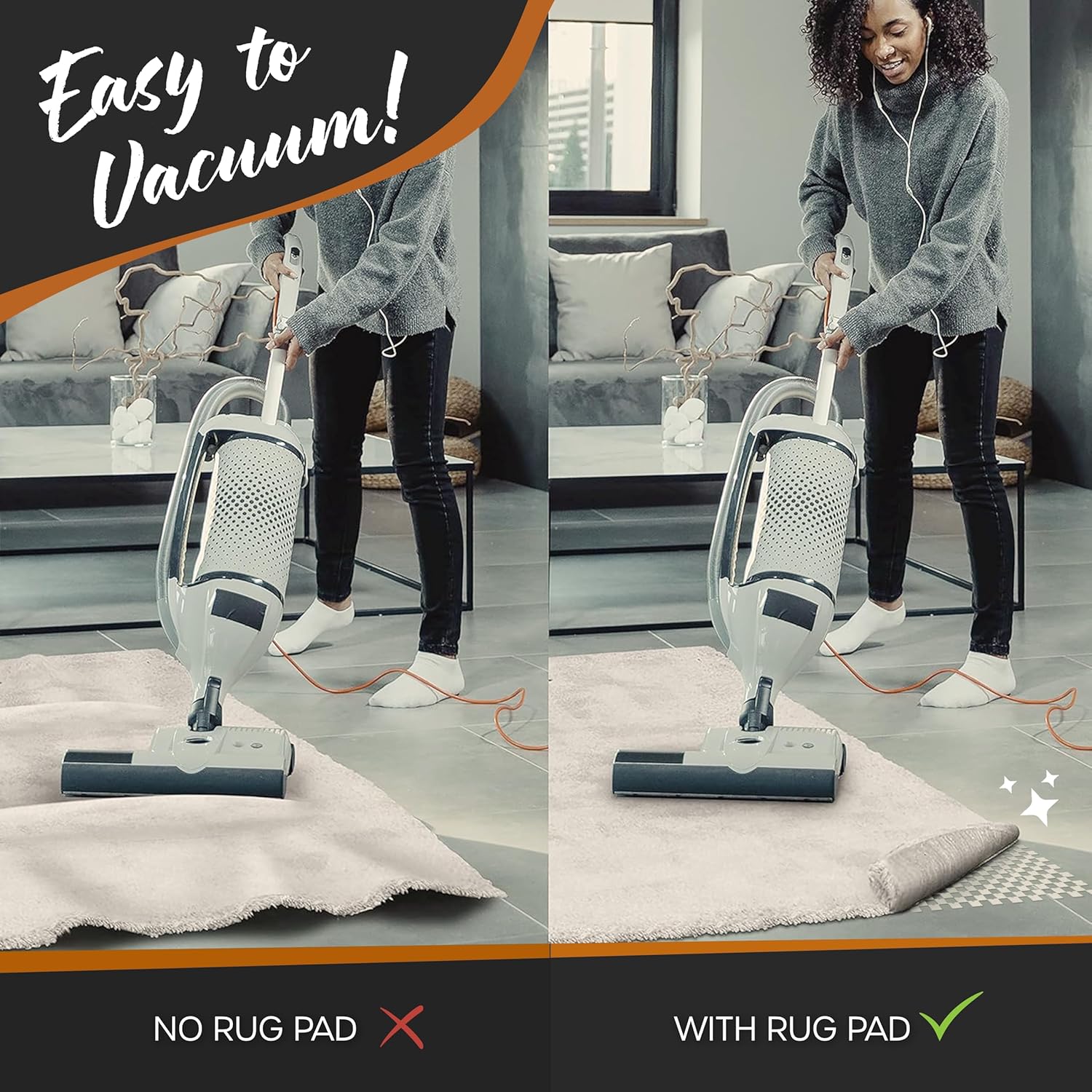 - Quick Setup, Easy Clean: Stop your rugs from moving around with our easy-install under carpet padding roll . Simply lift your runner or carpet, lay the under rug padding down on the floor, flatten out any bumps & then place your rug or carpet again on top. This carpet protector runner rug pad will hold your rugs firmlyโno more slipping or sliding! Cleaning is a breeze with our rug holders non slip grip for carpet โjust vacuum or wipe with a damp cloth & the runner pad ready for reuse!