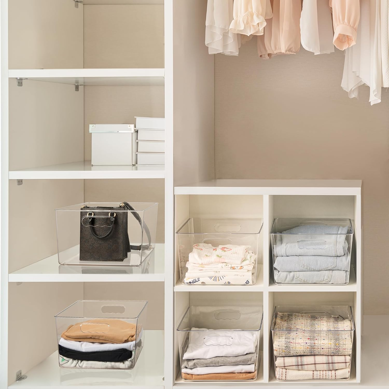 Vtopmart 6 Pack Extra Large Clear Plastic Storage Bins,11x11 Cube Acrylic Organizer Square Containers with Handle for Pantry,Closet,LaundryRoom,Kitchen,Bathroom,UnderSink Organization