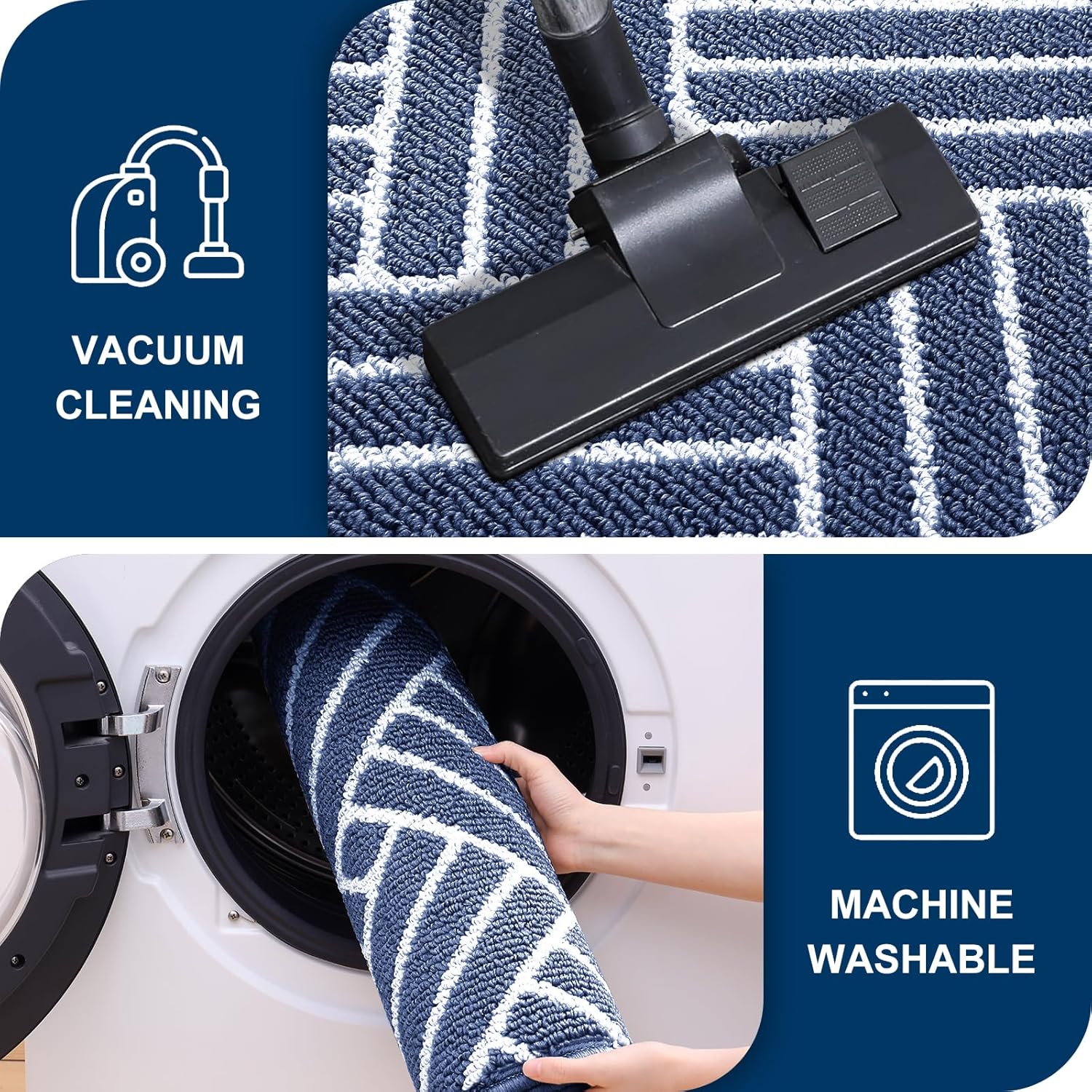 OLANLY Indoor Door Mat, 32x20 Inch, Dirt Resistant and Absorbent, Non-Slip Rubber Backing Floor Mats, Easy Clean Low-Profile Doormat for Entryway, Front Door, and Inside Entrance, Navy