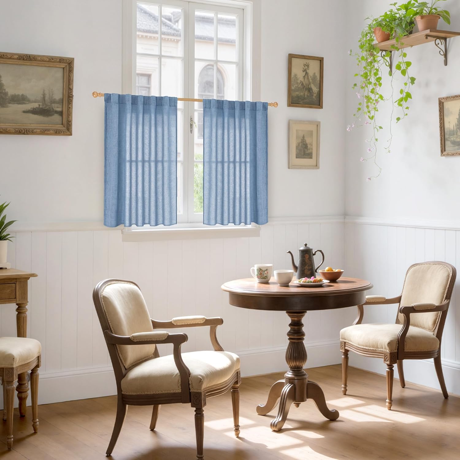 YoungsTex Denim Blue Short Linen Curtains 40 Inch Length for Kitchen Window, Semi Sheer Window Drapes with Rod Pocket Back Tab Light Filtering Privacy for Bathroom, 2 Panels, 42 x 40 Inch