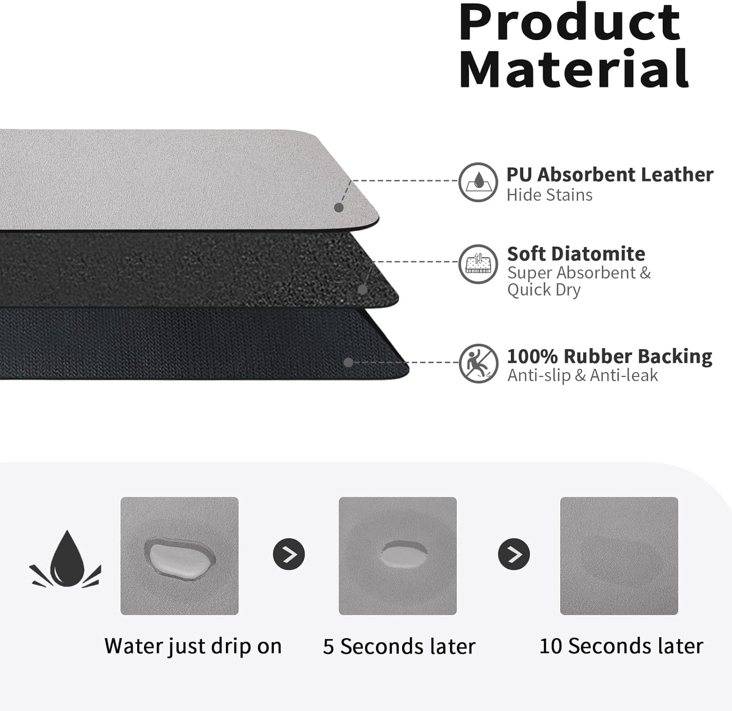 Dish Drying Mat for Kitchen Counter, Heat Resistant Drainer Mats with Non-slip Rubber Backed, Hide Stain Kitchen Super Absorbent Draining Mat, Easy to Clean Dish Rack Pad, Grey 18"x32"