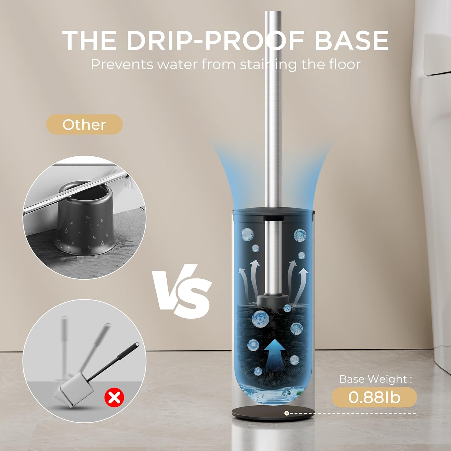 - Drip-Proof Heavy Duty Base: Designed with a sturdy and compact base, FORIOUS toilet brush and holder effectively catches drips, preventing water stains on your floor while keeping your bathroom organized and tidy
