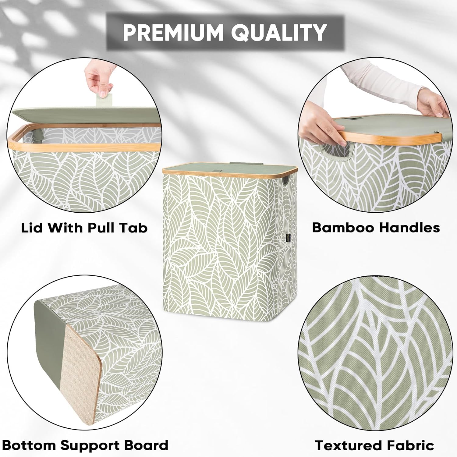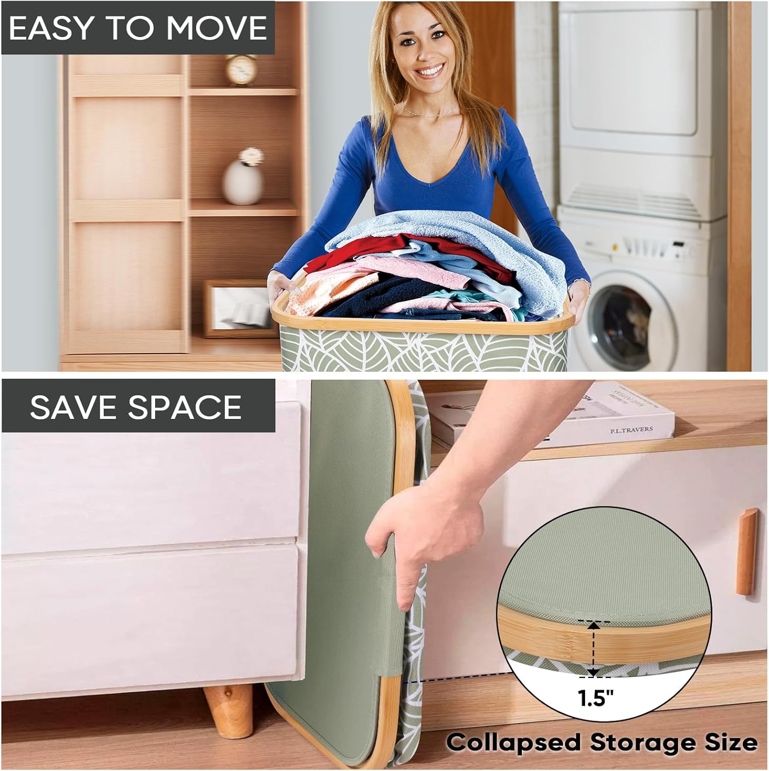 - [DURABLE AND ECO-FRIENDLY] We care about the environment, which is why our laundry hamper is made from sustainable bamboo rim. Bamboo is known for its exceptional strength and durability, ensuring this clothes hamper's handle will withstand the test of time. By choosing our eco-friendly laundry basket organizer, you're making a conscious decision to reduce your carbon footprint.