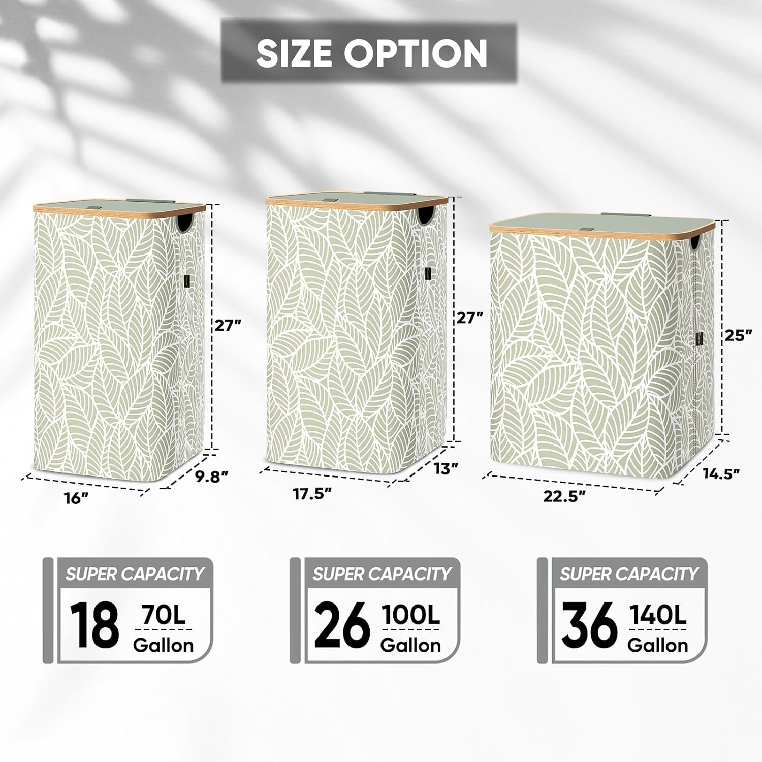 - [AMPLE CAPACITY AND EASY ACCESS] With 18 Gallon/26 Gallon/36 Gallon (70L/100 L/140 L) size option, the hampers for laundry provide ample capacity to hold all your dirty clothes, towels, bedding, and more. The lightweight lid is easy to open and close, providing quick and convenient access to your laundry.