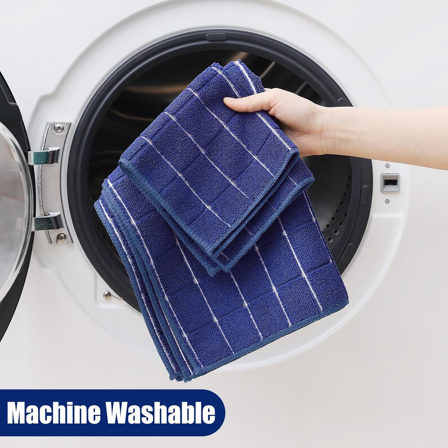 Homaxy Microfiber Kitchen Towels and Dishcloths Set, 12 Pack Soft and Absorbent Dish Hand Towels Bulk, 28 x 16 Inch & 12 x 12 Inch Quick Drying Rags for Washing Dishes, Navy Blue